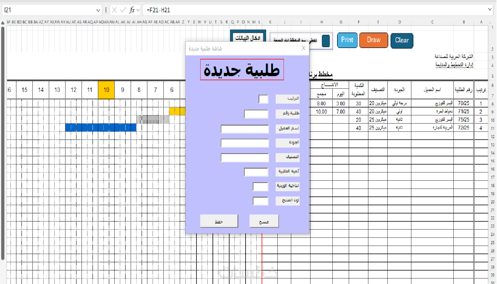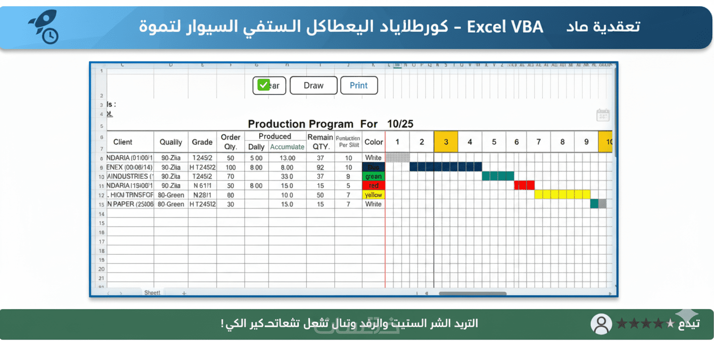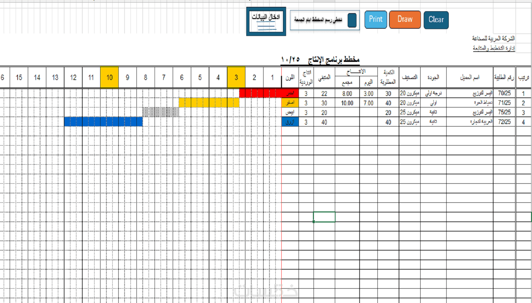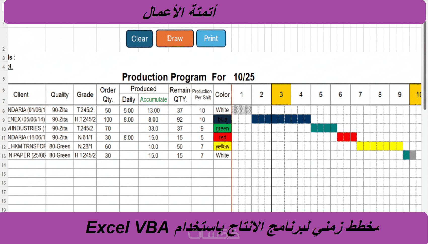 رسم تخطيطي تفاعلي واتمتة للبرنامج الزمني للانتاج ب Excel VBA