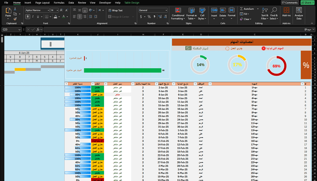ملف اكسل Excel لإدارة المهام متوفر بالعربي والانجليزي