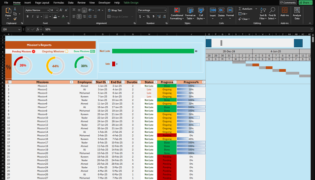 نظام Excel متكامل لإدارة المهام وتتبع الأداء مع تقارير ذكية