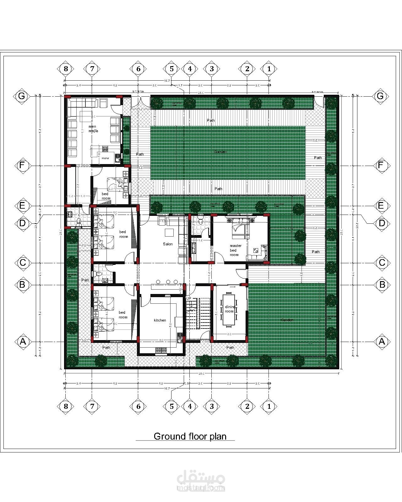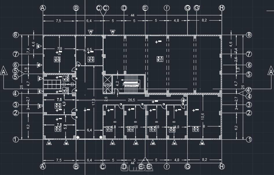 رسم مخطط هندسي معماري على برنامج الاتوكاد لجميع المنشئات