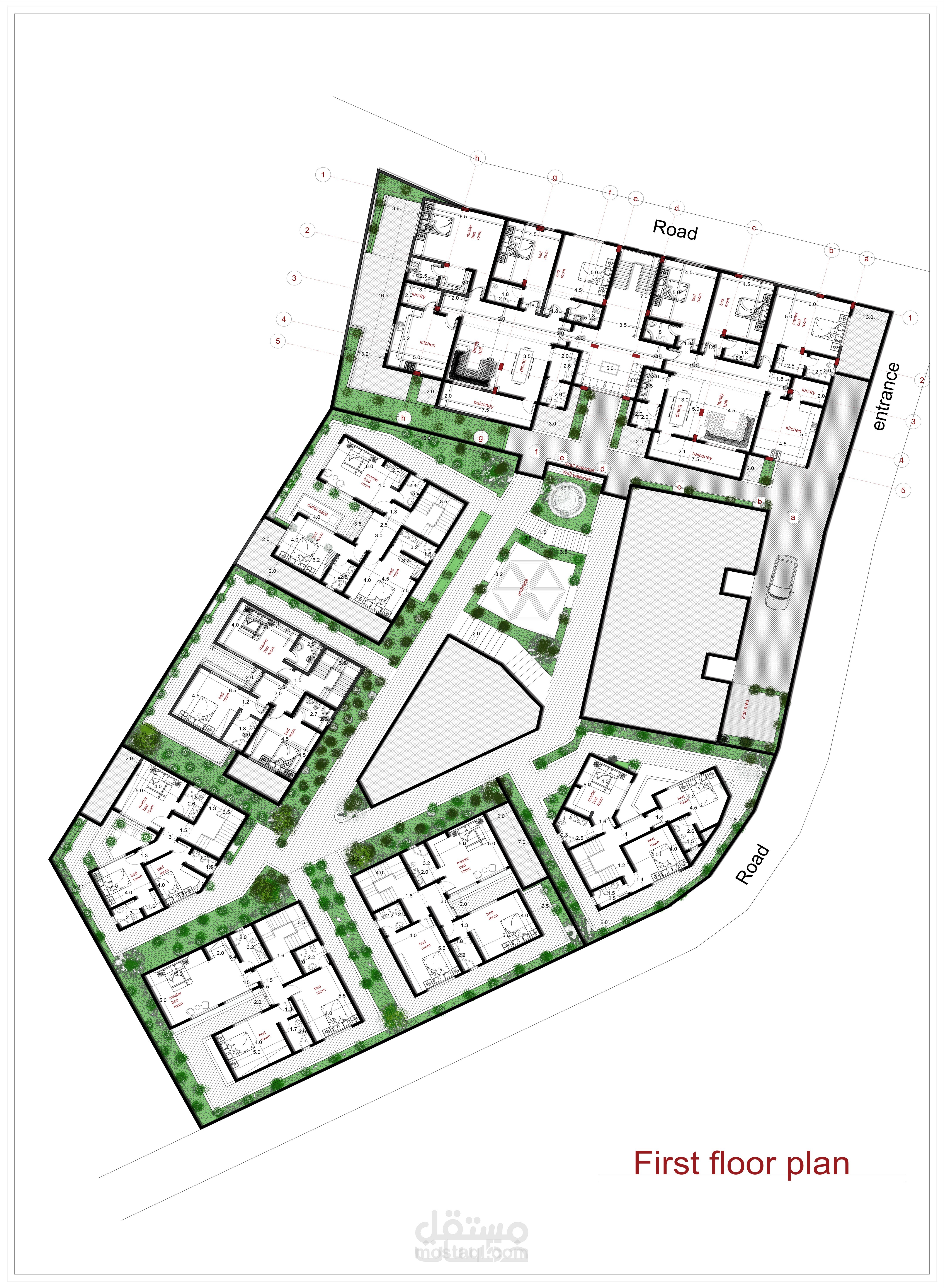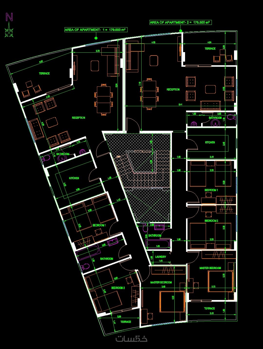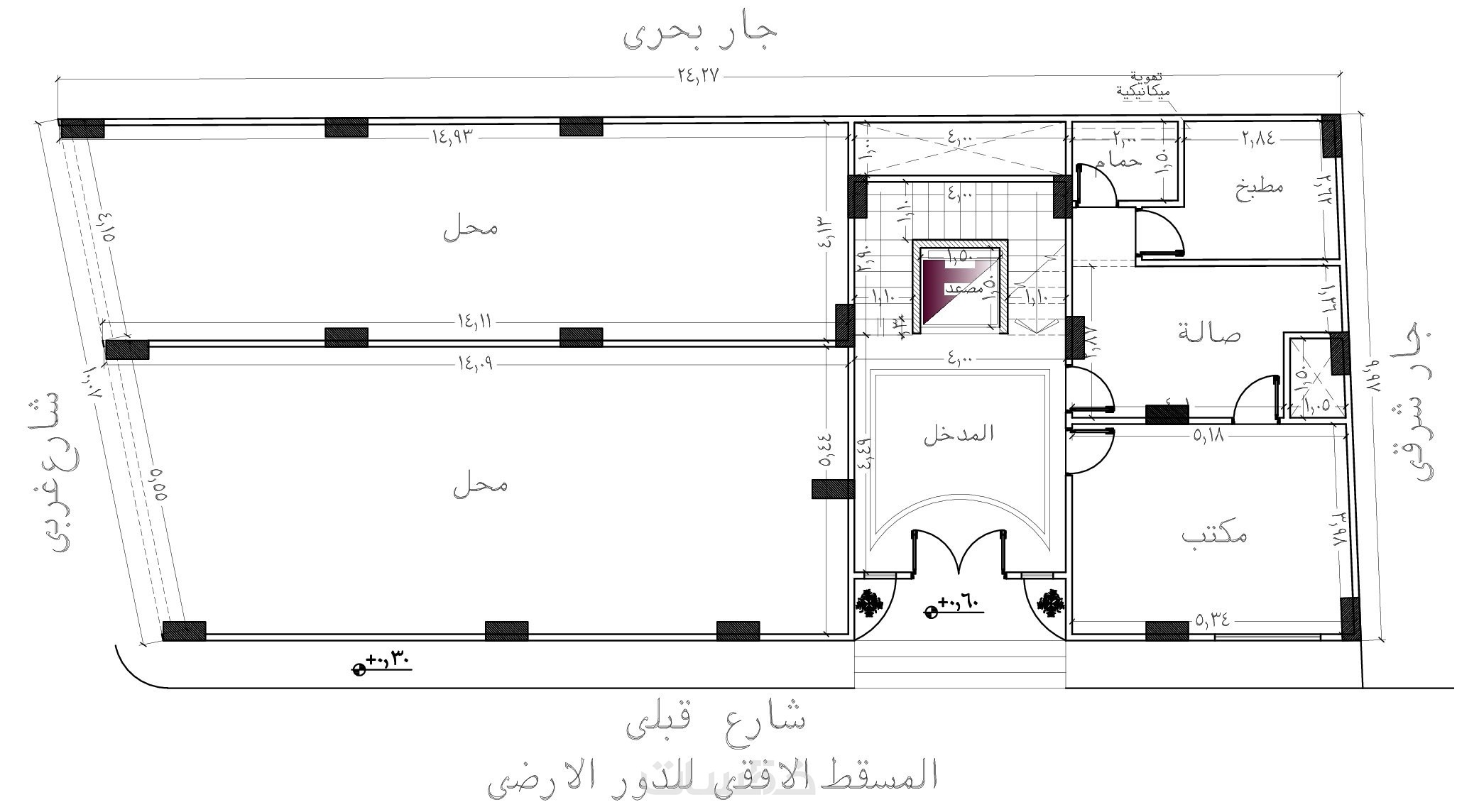 رسم هندسي للمساقط الافقية للمباني متعددة الاستخدام