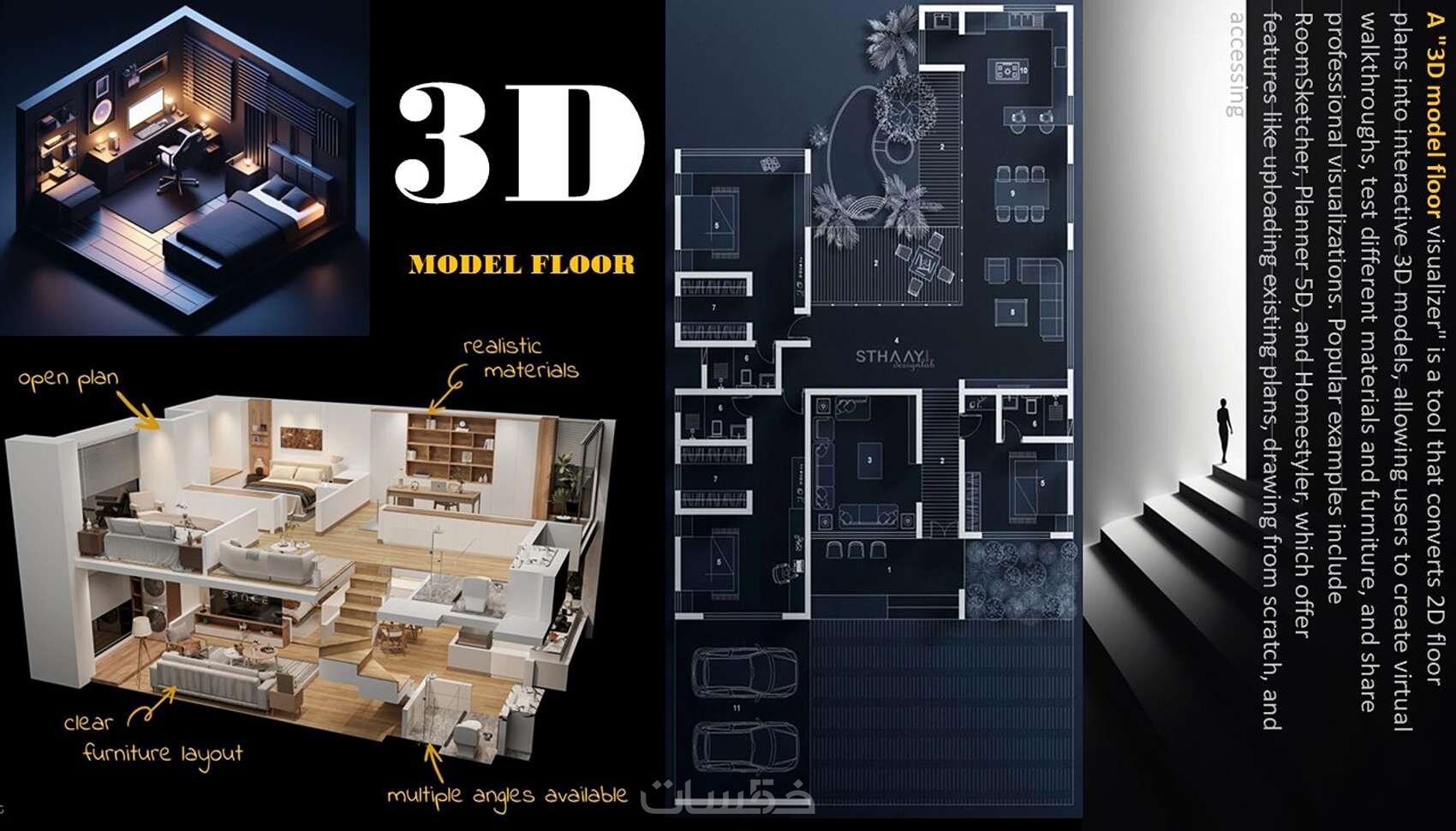تحويل من مخطاات اتوكاد 2D إلى 3D FLOOR ثلاثي الأبعاد HD