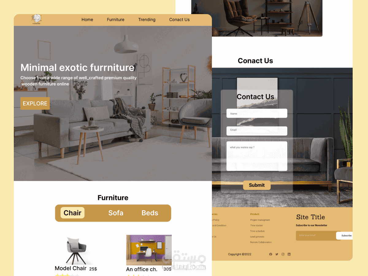 تصميم landing page صفحة هبوط للاثاث بشكل احترافي uiux