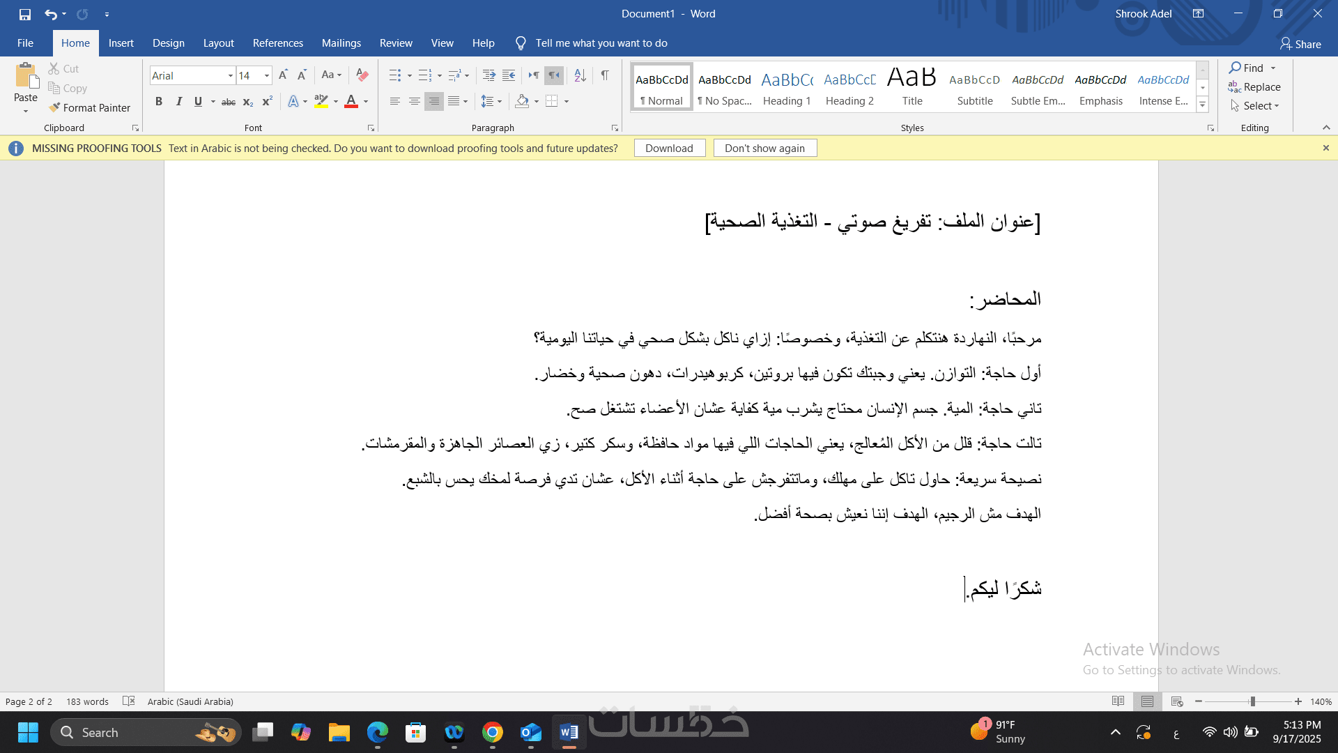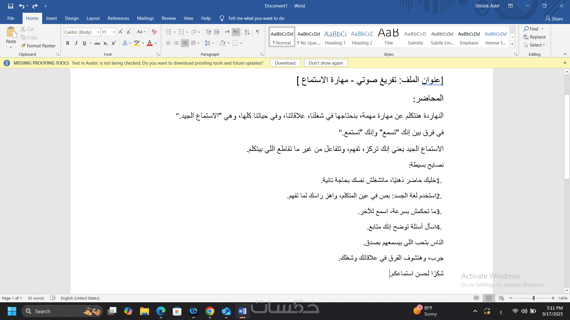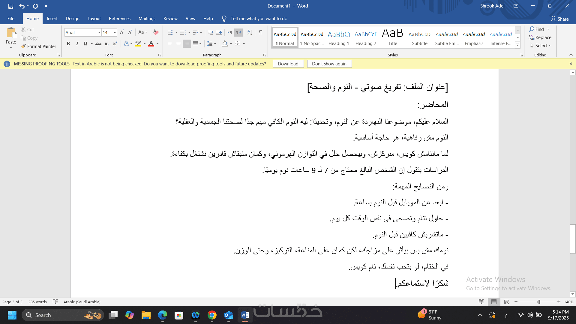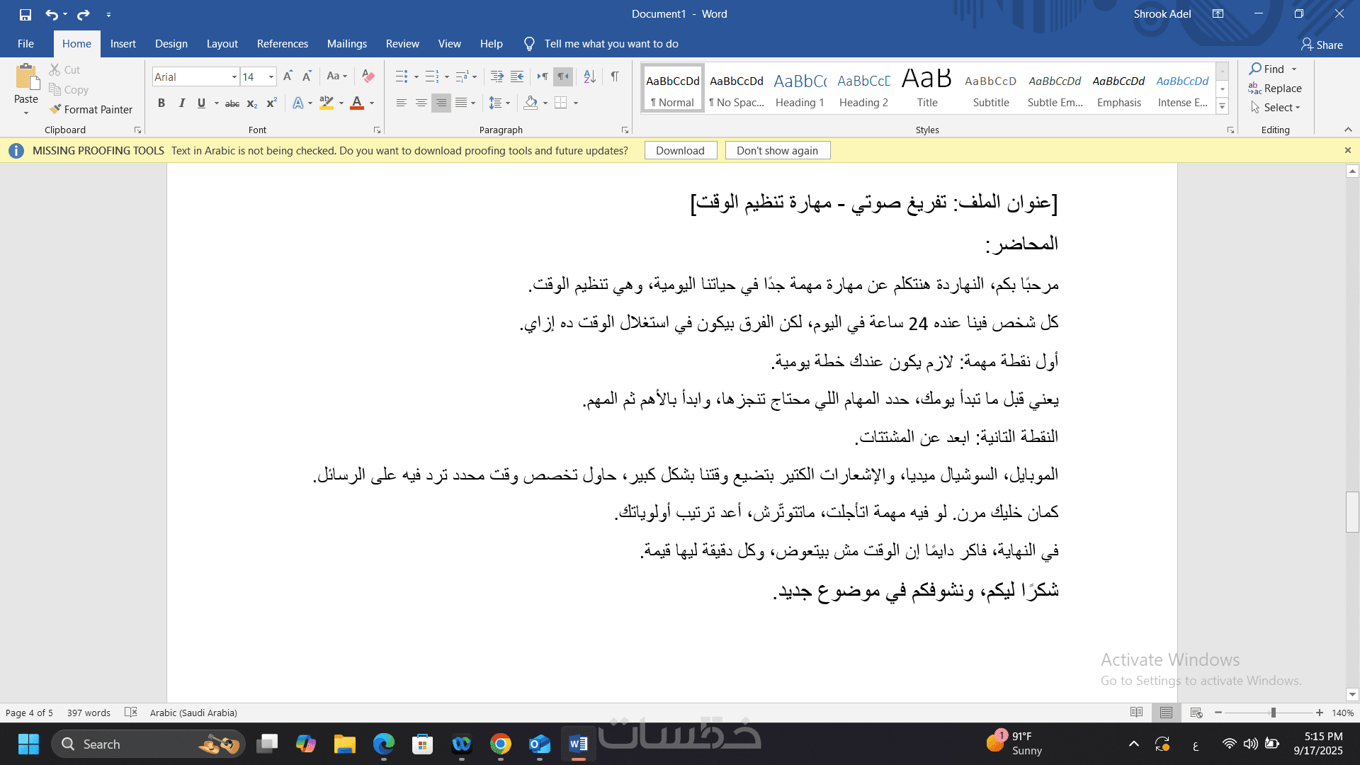 تفريغ محاضرات أو اجتماعات باللغة العربية مع تنسيق ممتاز