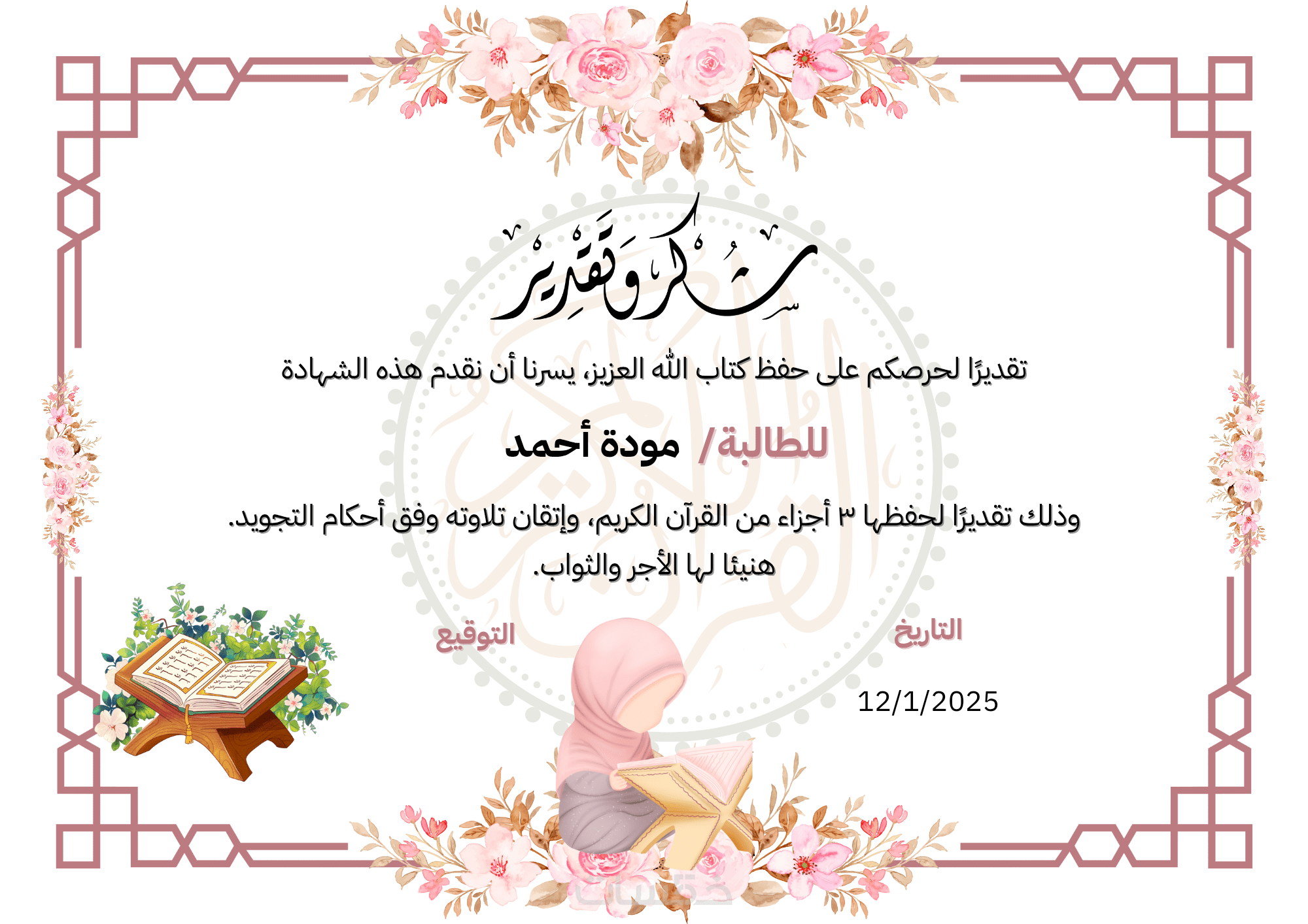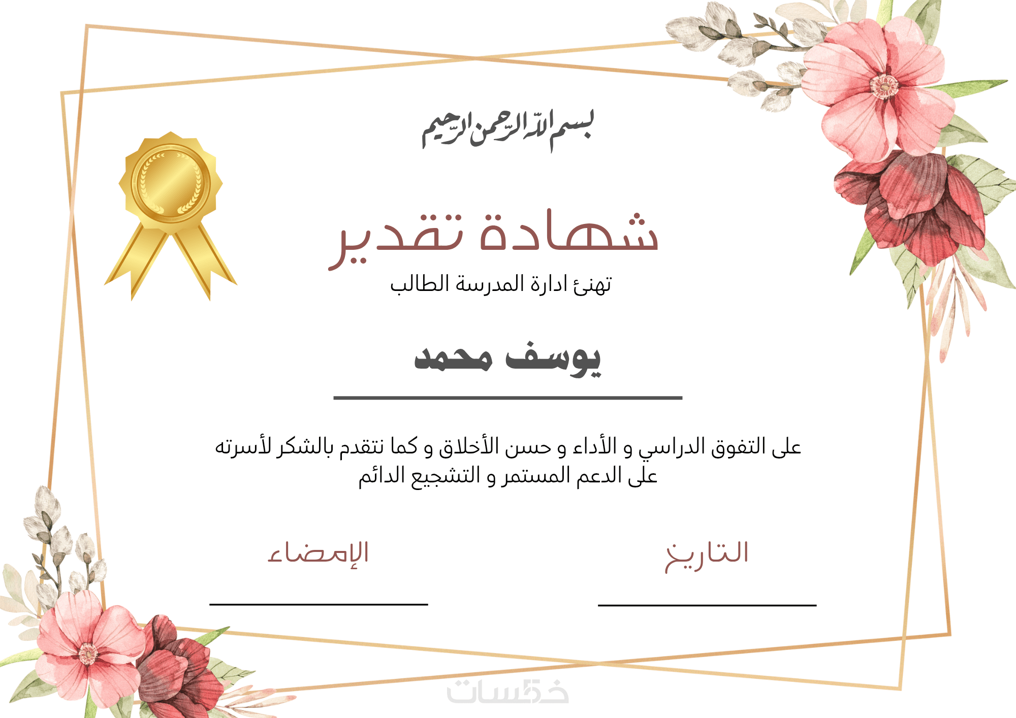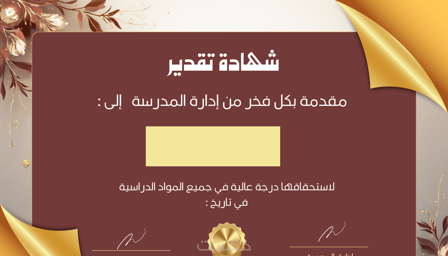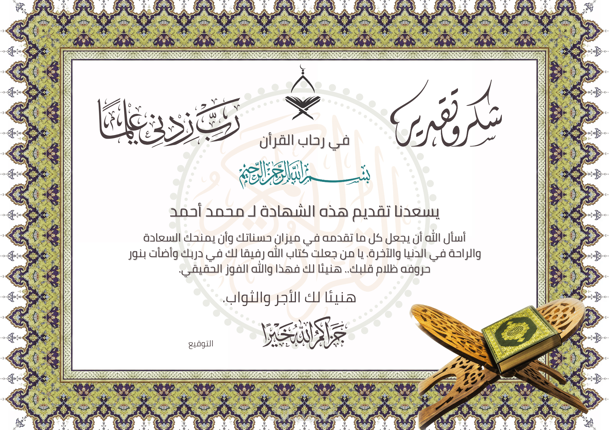 تصميم شهادة شكر وتقدير احترافية
