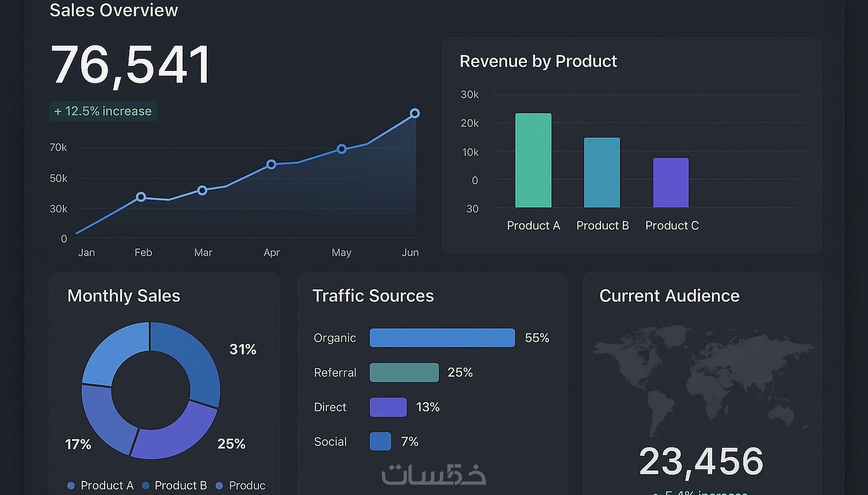 لوحات تفاعليه لقياس الاداء على برنامج Power BI أو Tableau