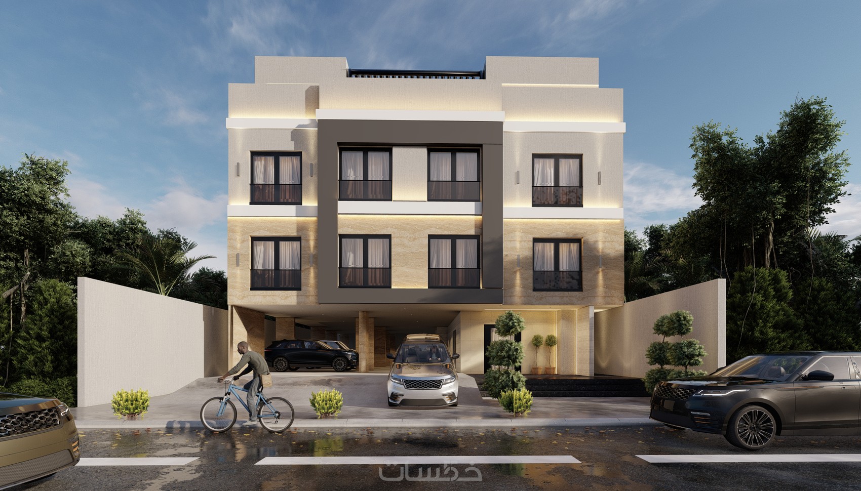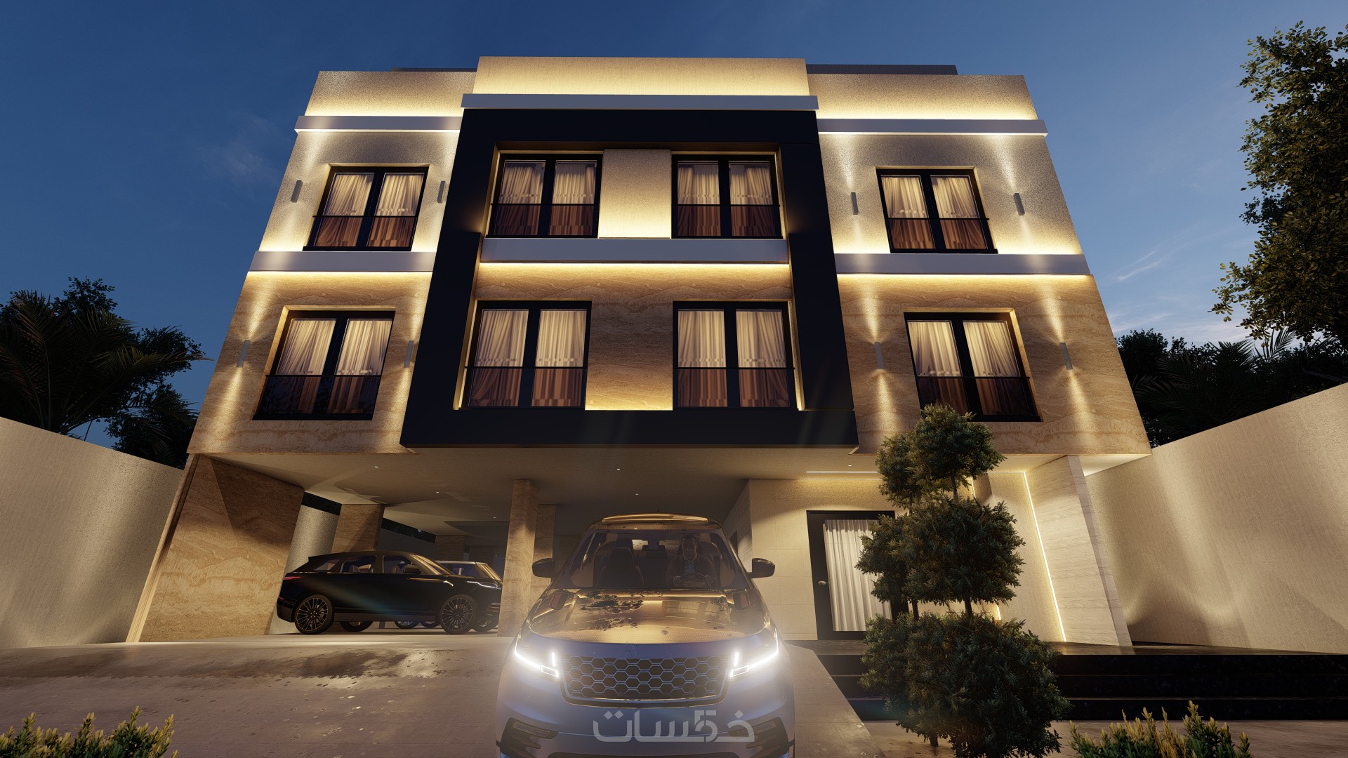 تصميم واجهة فيلا ومبنى سكني بنمط تصميم مودرن
