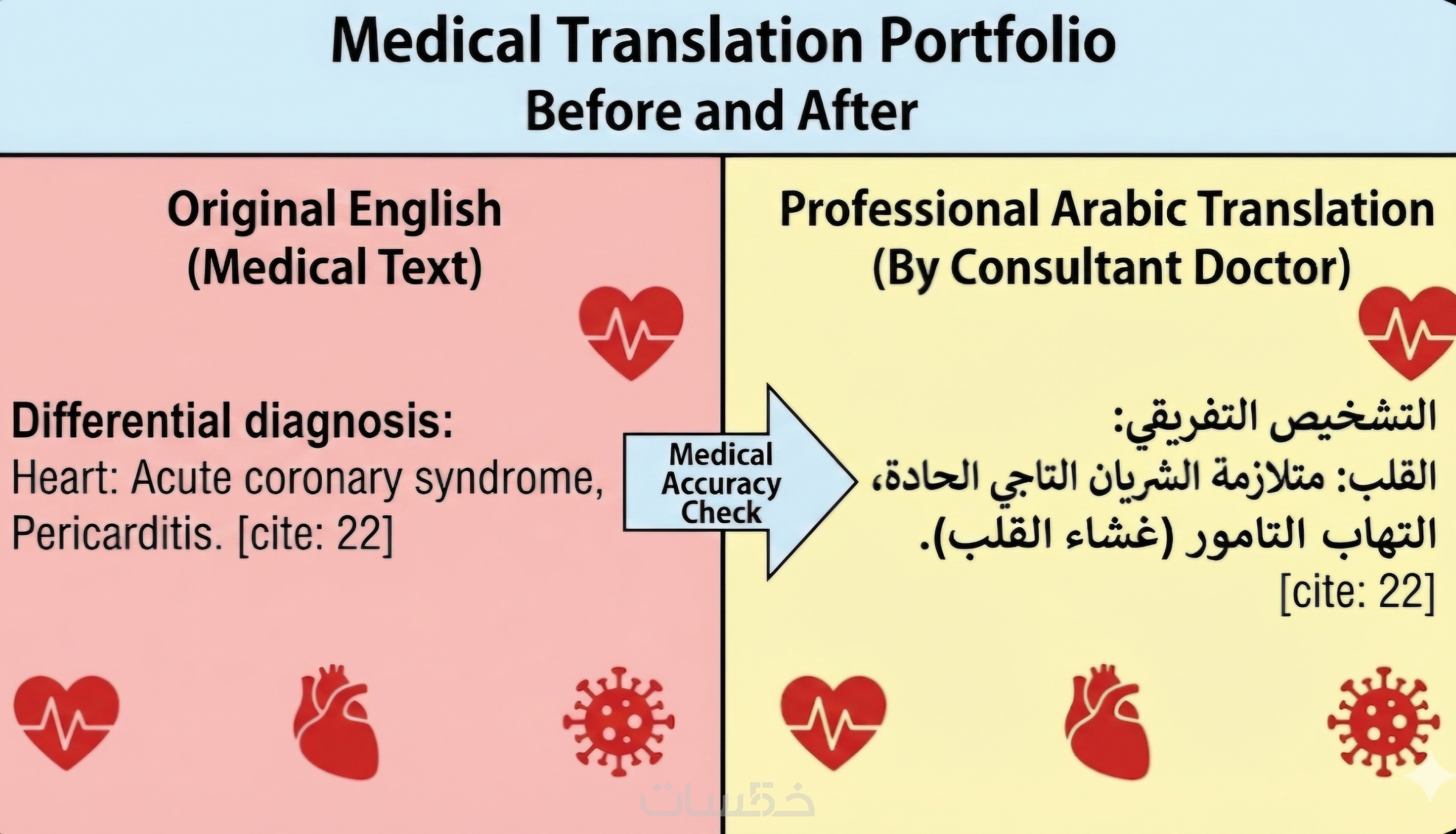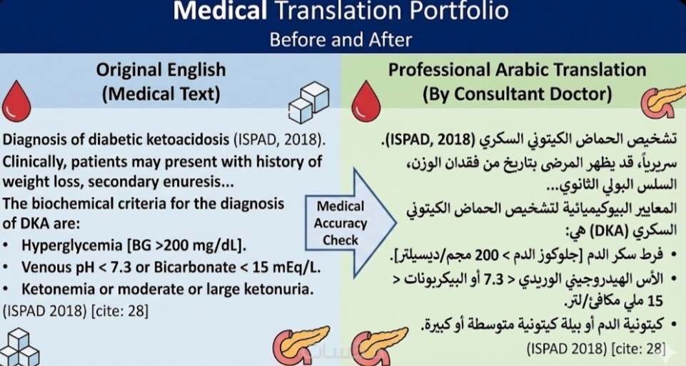 ترجمة طبية أكاديمية عربي انجليزي يدوية بيد طبيب استشاري