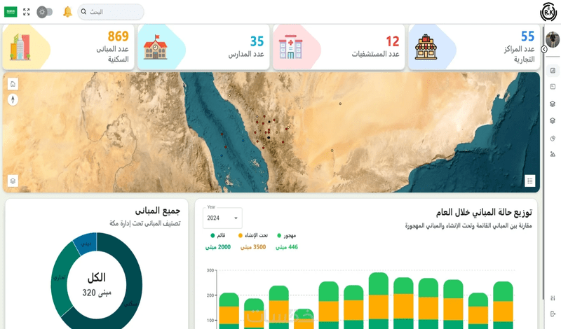 سأقوم بتطوير موقع أو تطبيق GIS متكامل لتحليل وعرض البيانات
