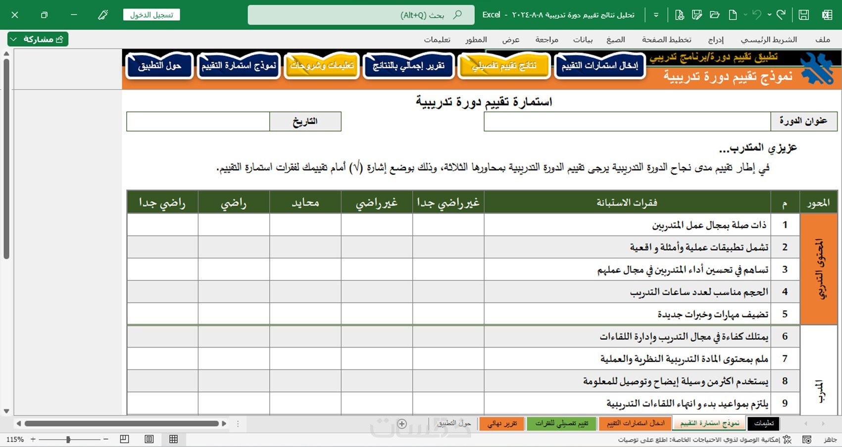 تصميم استمارة إدخال بيانات إلكترونية (10 أسئلة)