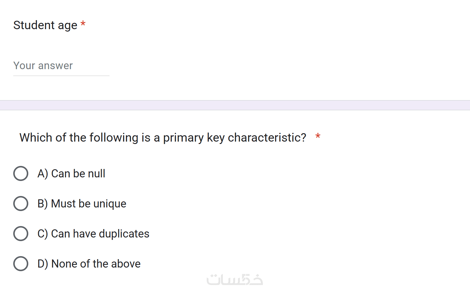 تصميم استمارة إدخال بيانات ورقية (10 أسئلة)