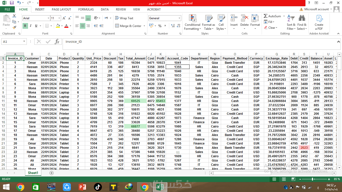 إدخال البيانات على word , Excel باللغة العربية و الانجليزية