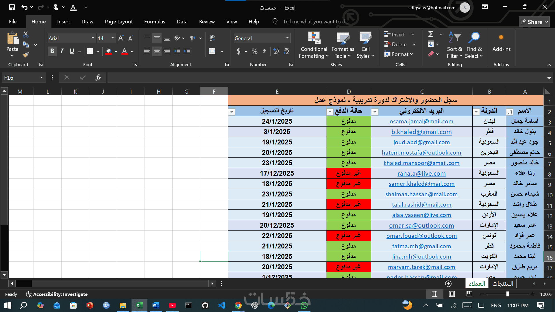 العمل على برنامج الاكسيل ، البوربوينت ، والوورد