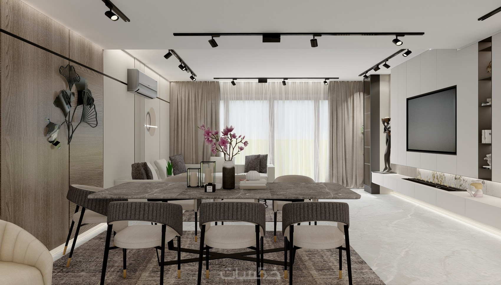 تصميم داخلى ثلاثى الابعاد لشقة سكنيه باسلوب مودرن