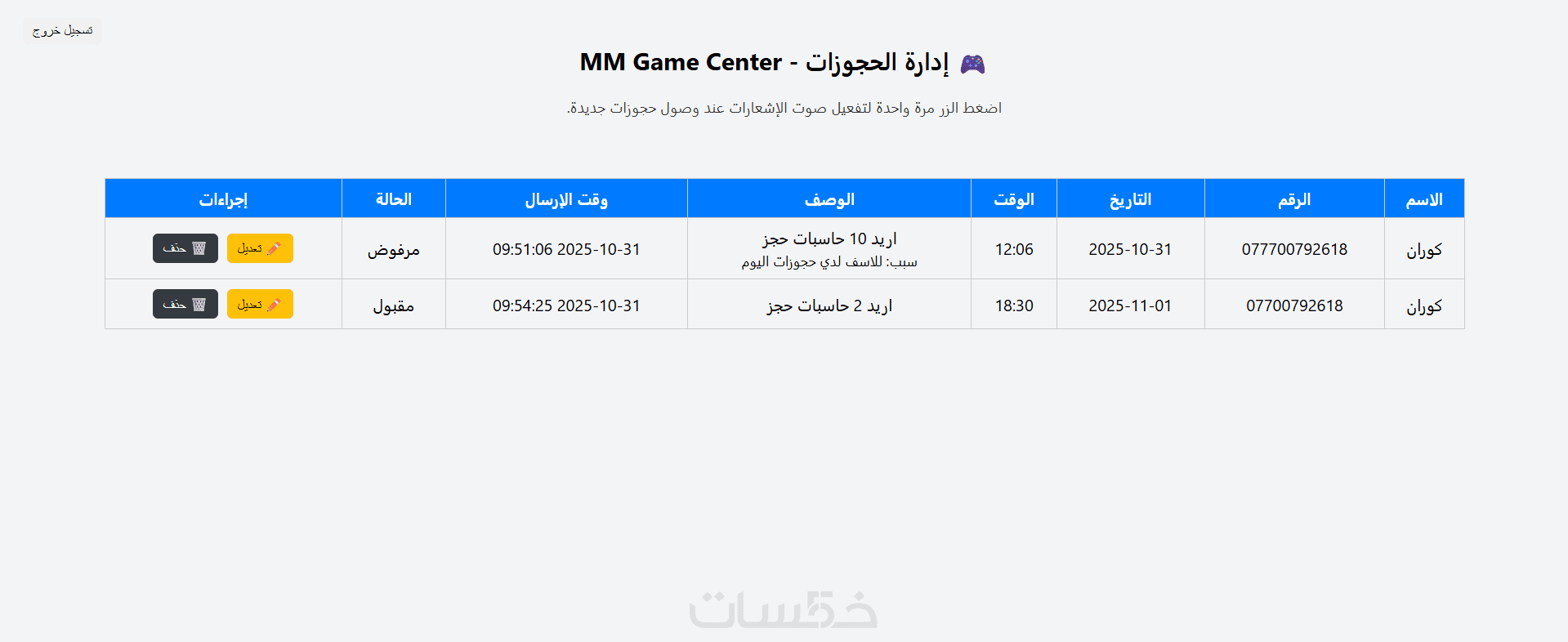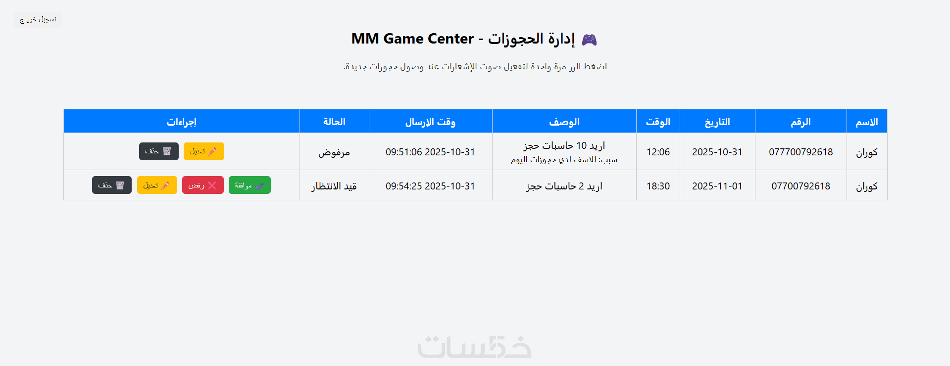 مشروع نظام حجز القاعة ويب تفاعلي متكامل