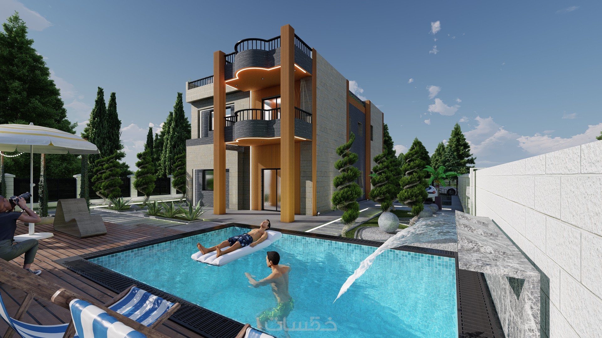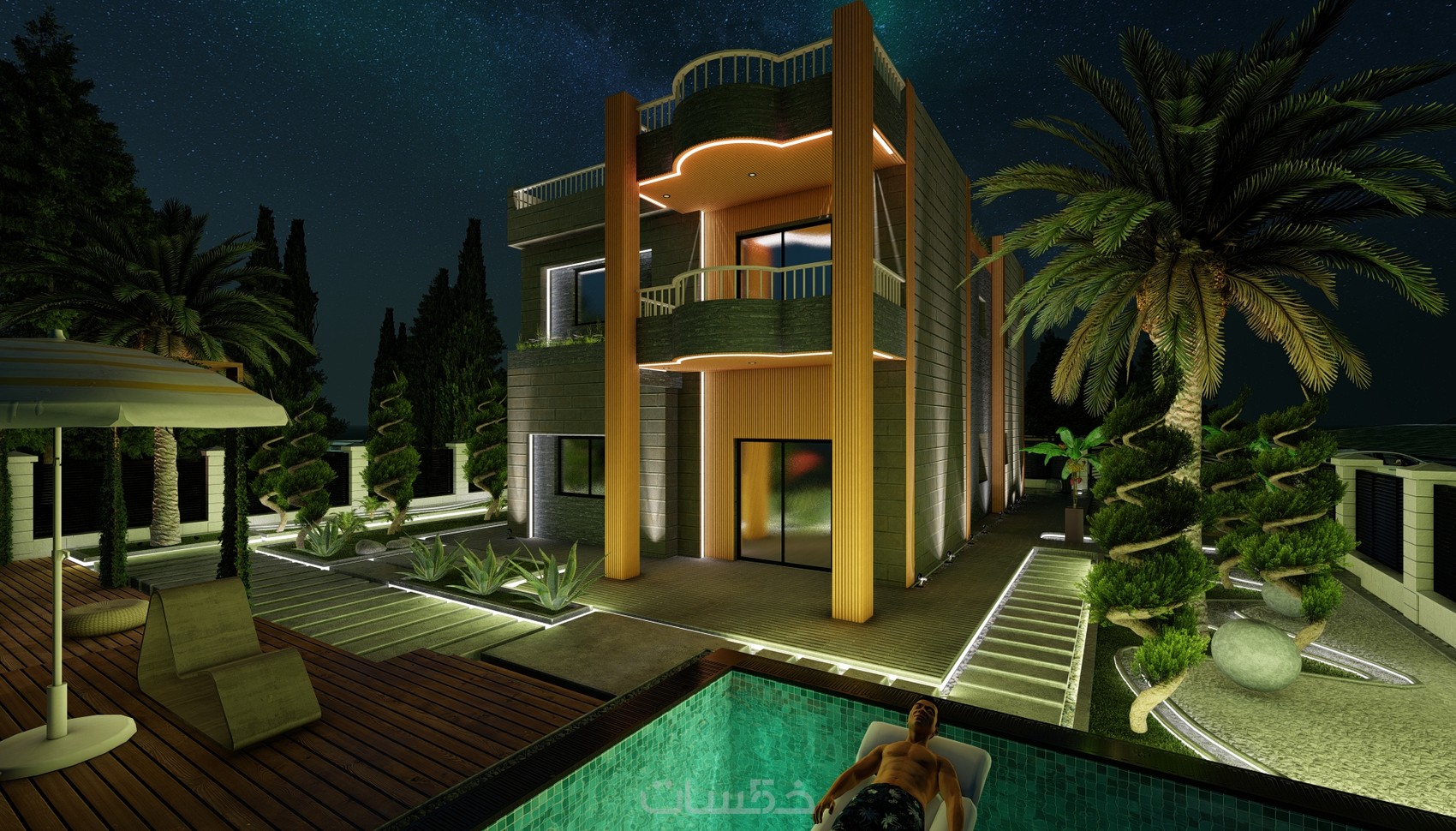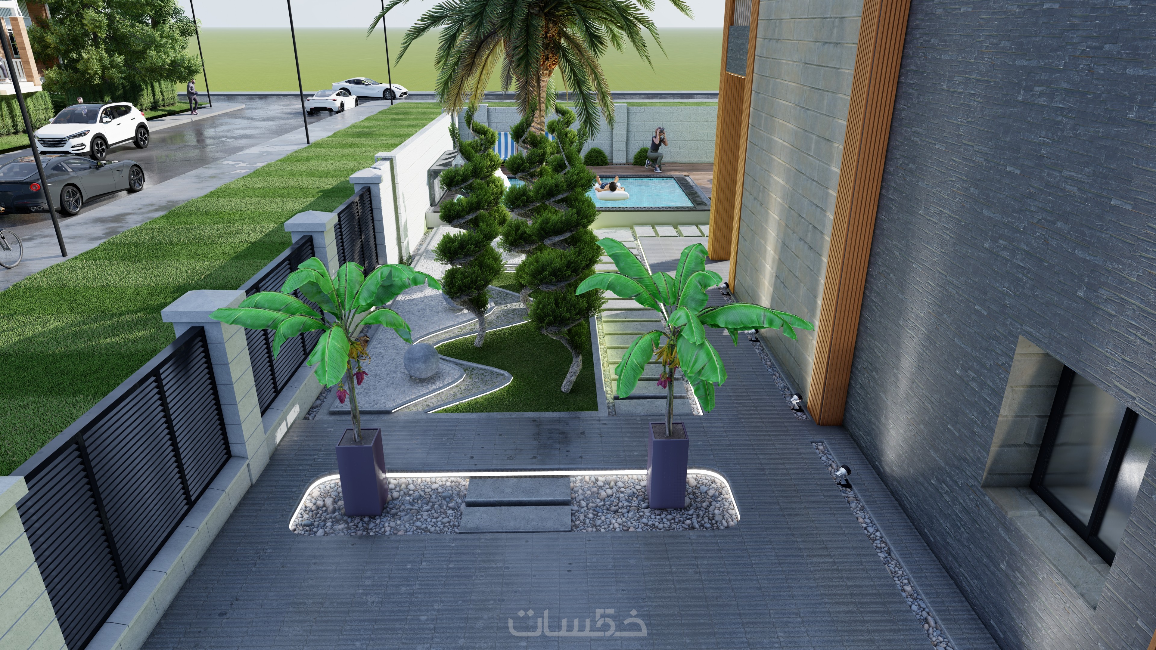 تصميم فيلا خارجي بالاضافه إلى حديقة