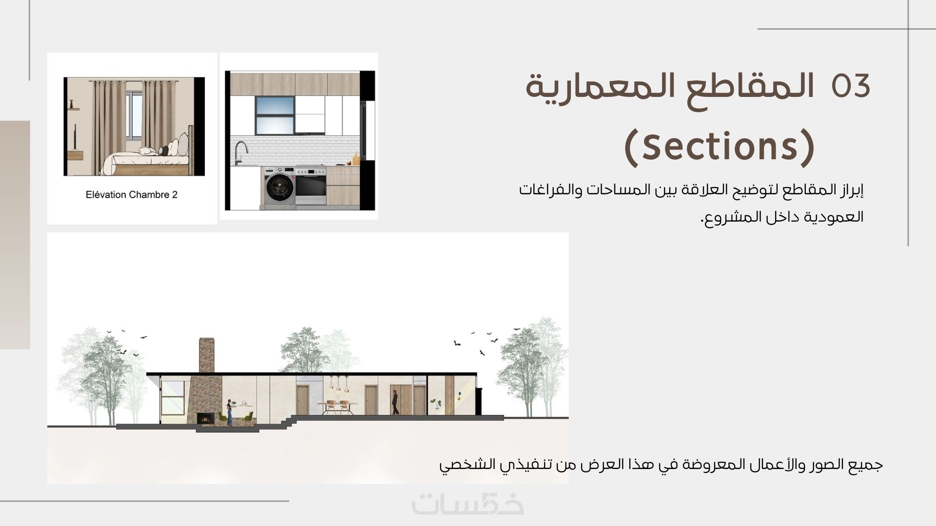 اظهار معماري للمساقط الأفقية والمخططات والقطاعات الرأسية