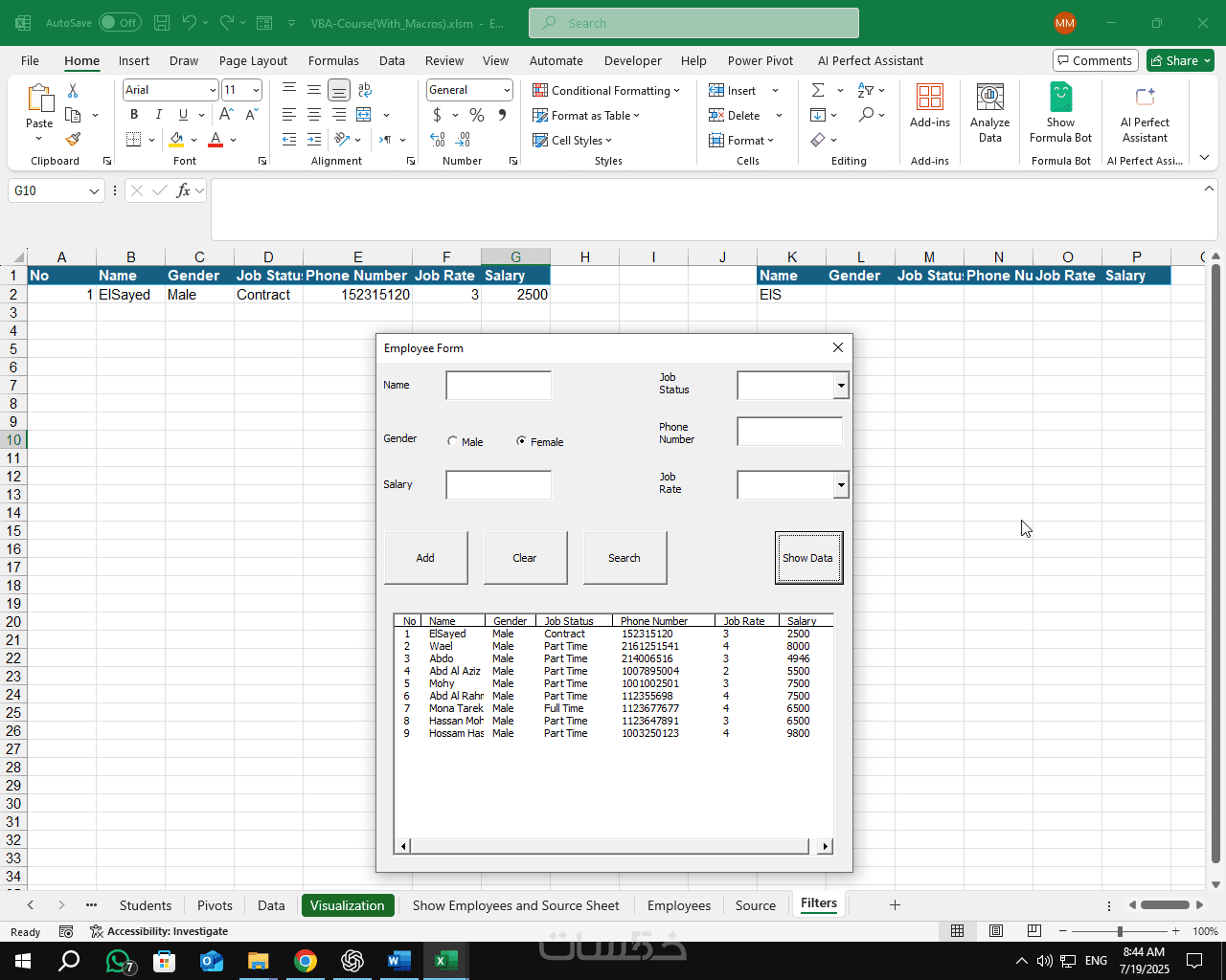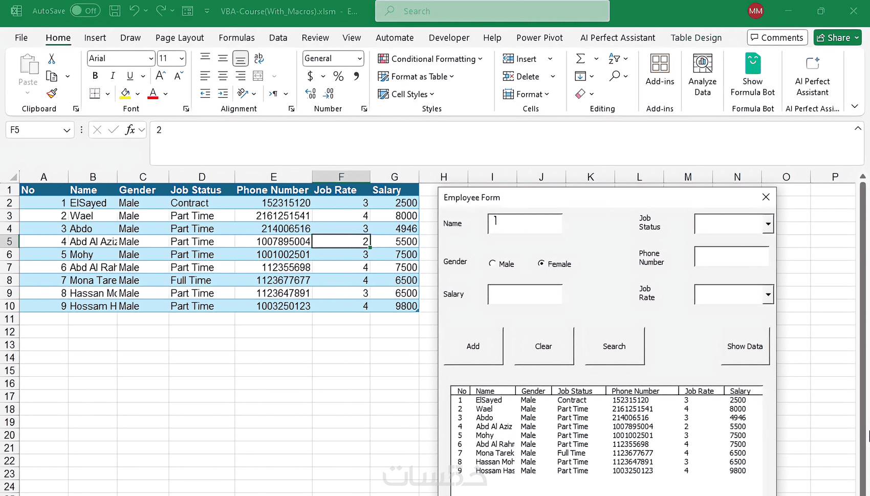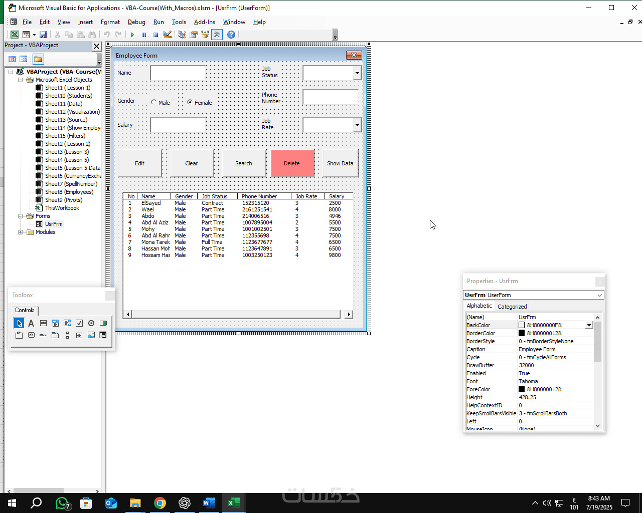 تطوير واجهة ادخال بيانات على الاكسل - اليوزرفورم User Form