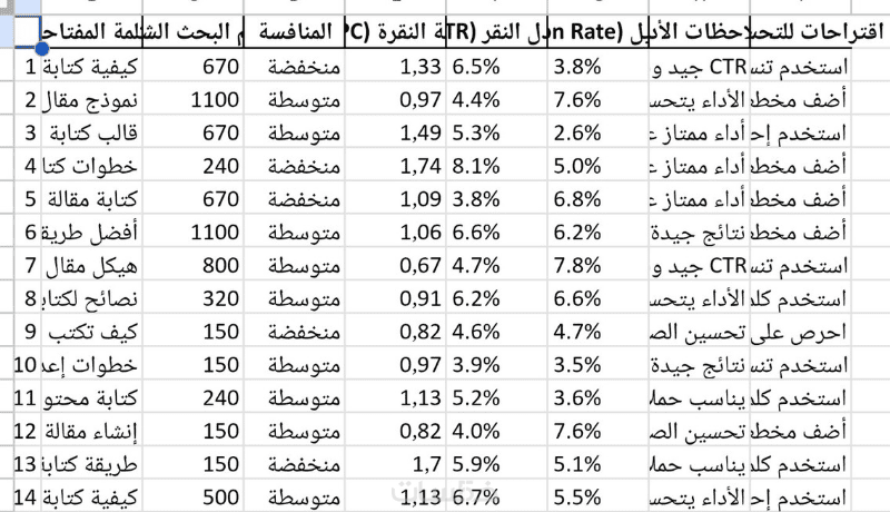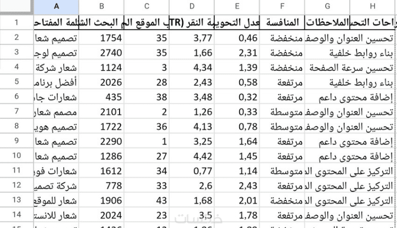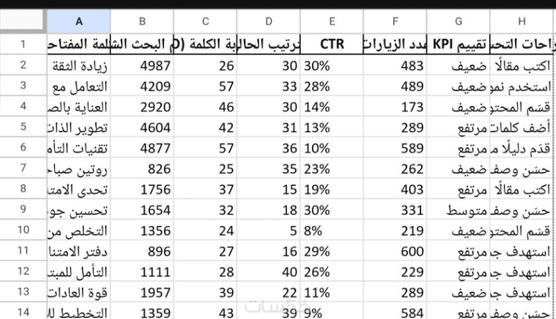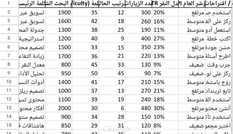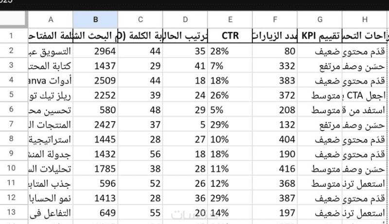 قالب تتبع الكلمات المفتاحية للتسويق الرقمي واقتراحات للتحسين