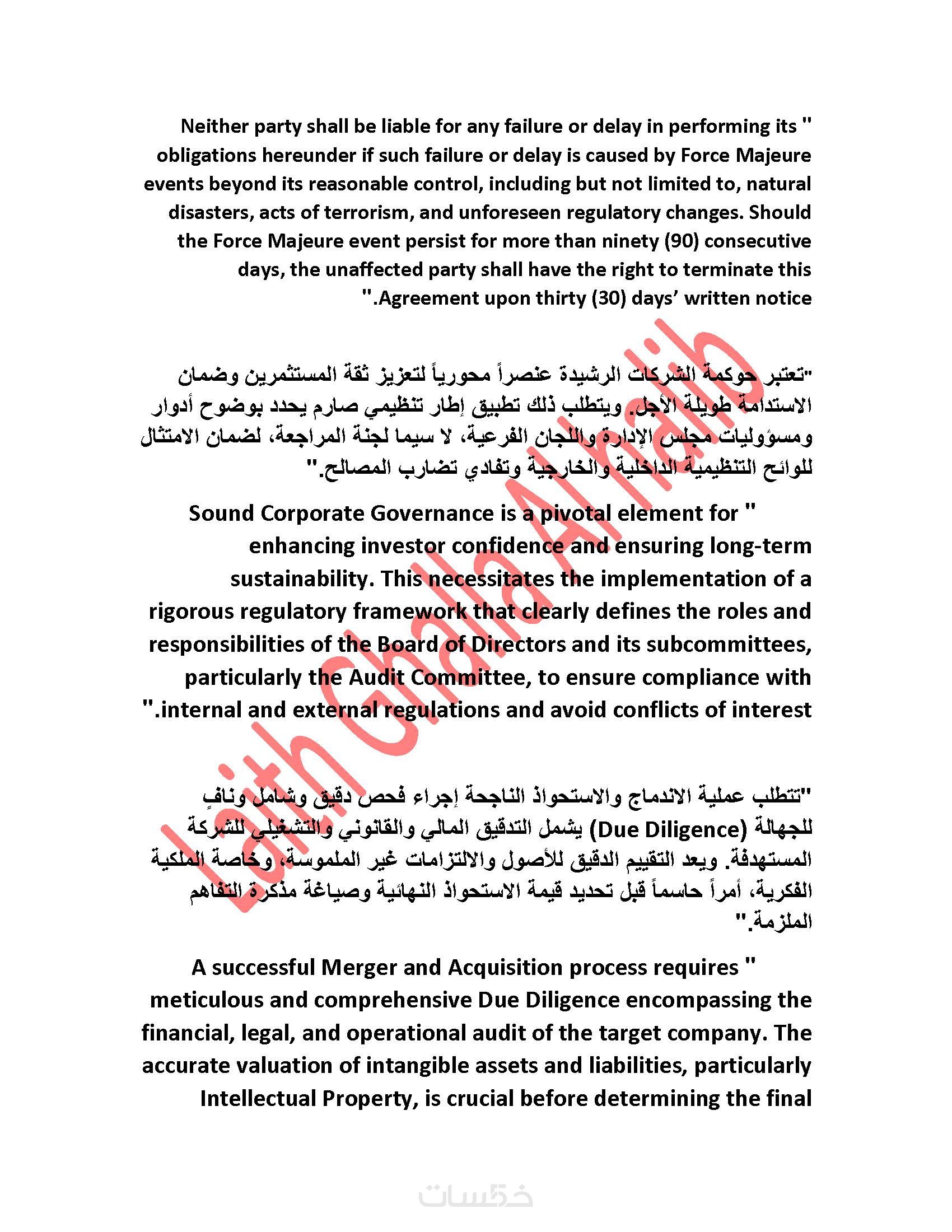 صياغة عقود واتفاقيات ببنودطبقا للقانون المصرى والسعودى