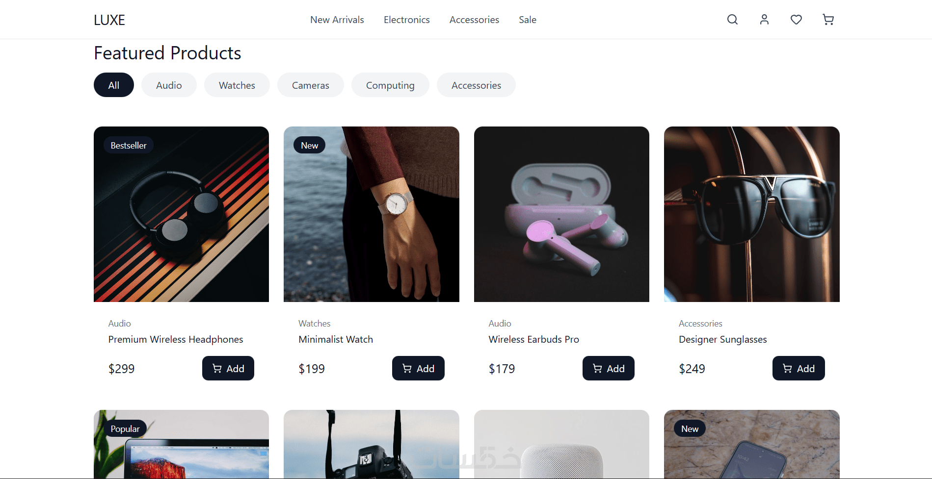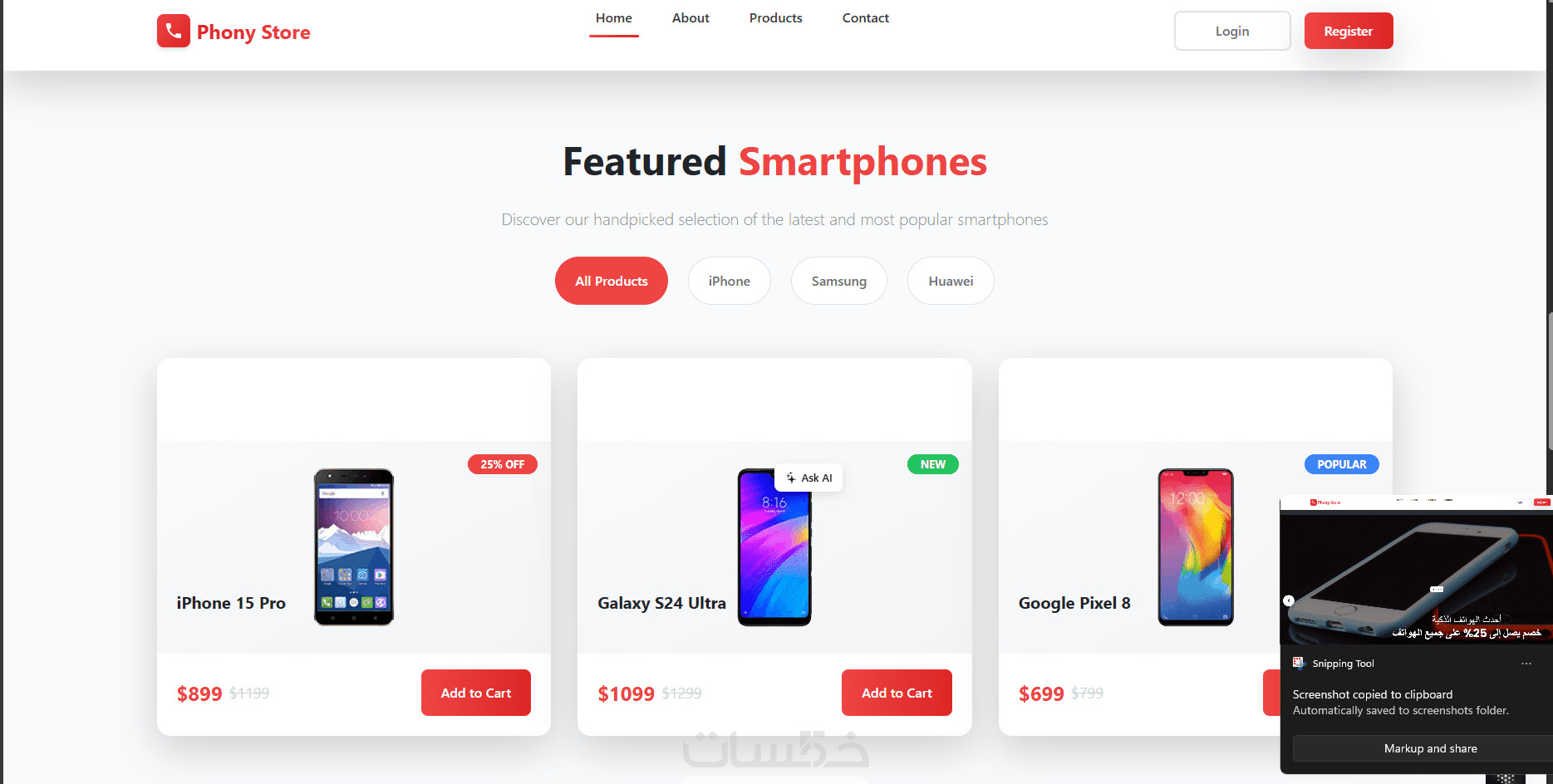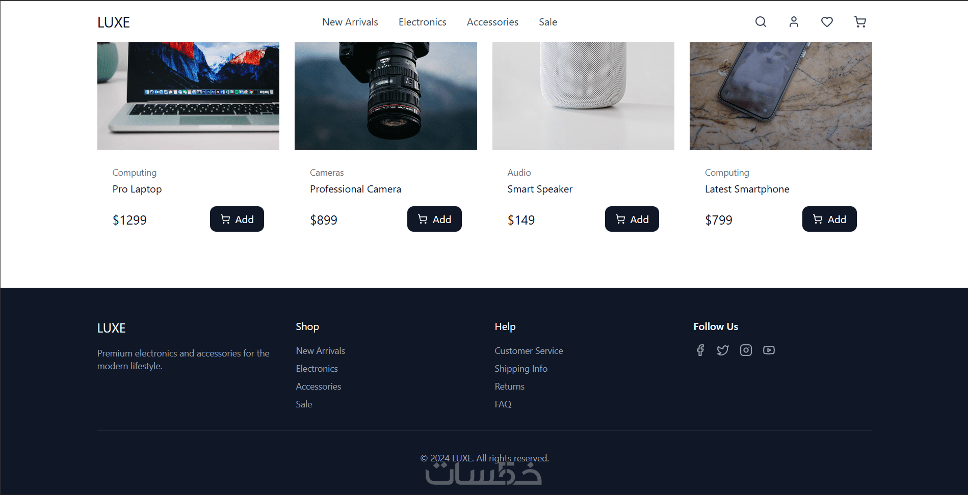 بناء موقع كامل متجاوب بجميع الاجهزة بواسطة React - Tailwind