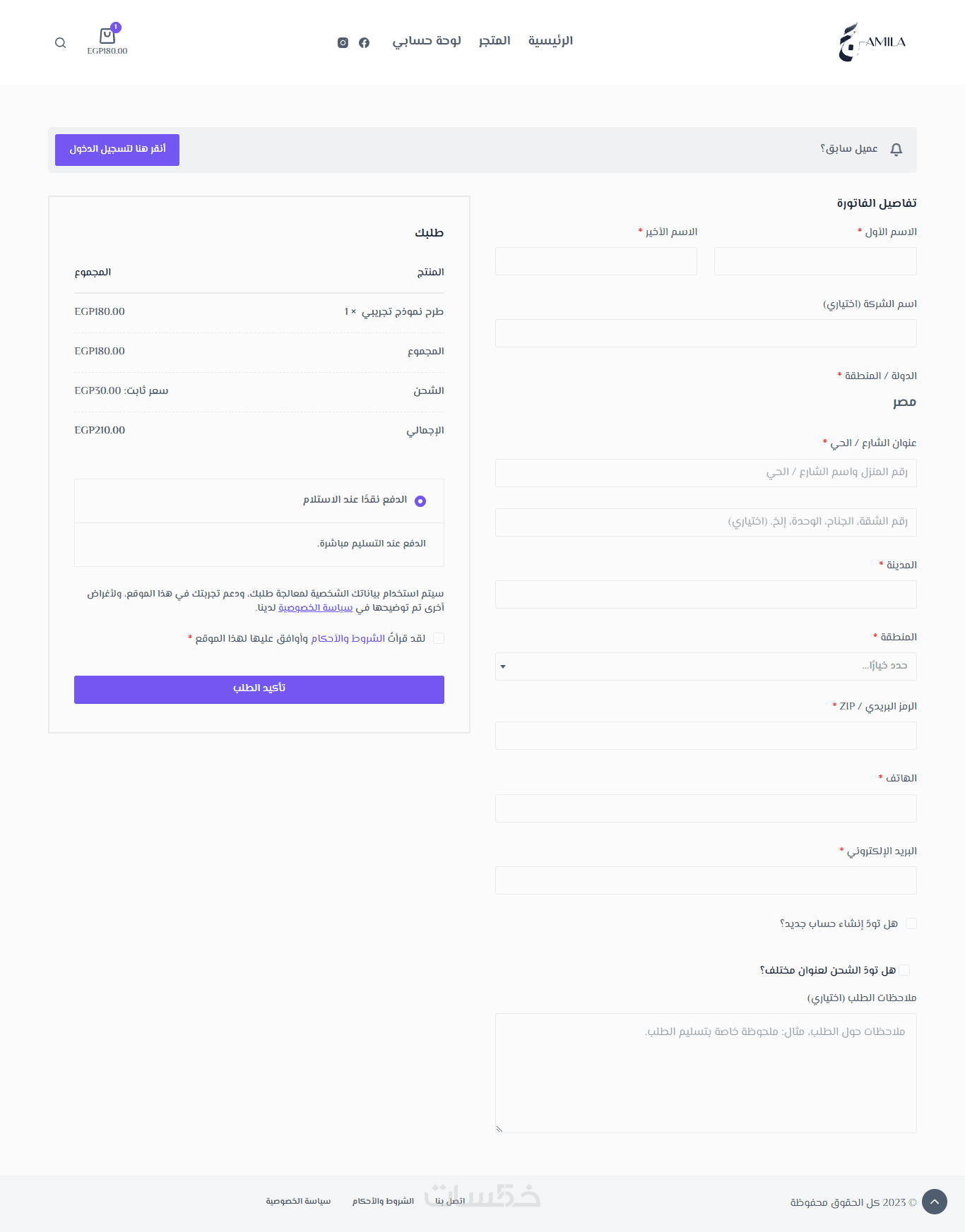 تطبيق ecommerce لشراء المنتجات وعمل الطلبات