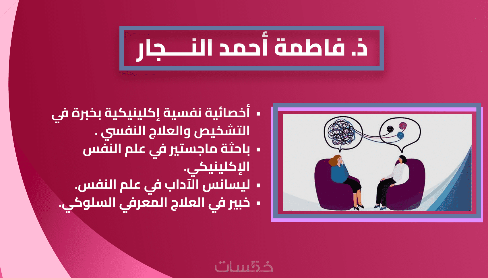أخصائية نفسية وعلاج المشاكل السلوكية والاجتماعية والاسرية