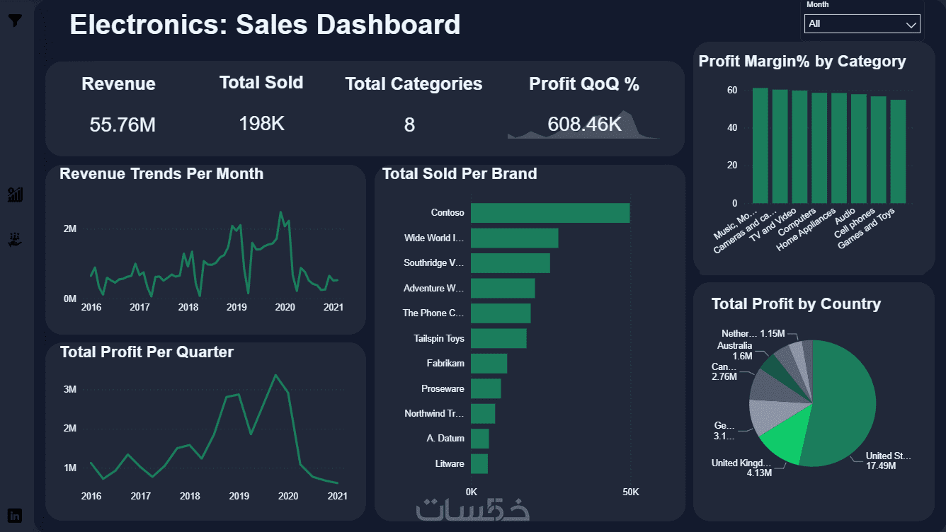 Dashboard احترافي باستخدام Excel لتحليل المبيعات والاداء