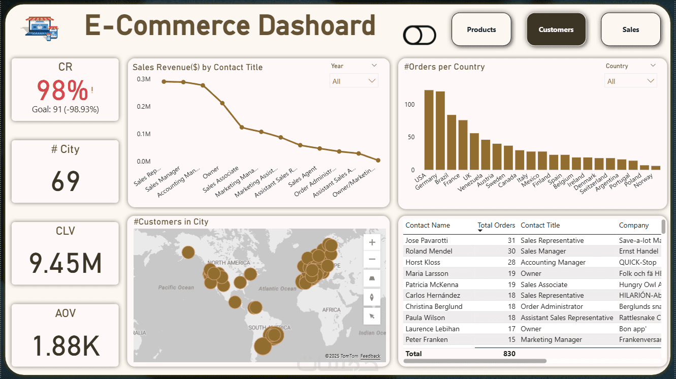 لوحات تفاعليه لقياس الاداء على برنامج Power BI أو Tableau