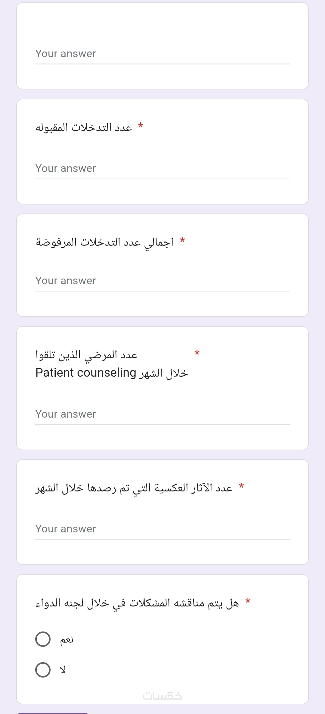 أضافة ردود على الاستبيانات