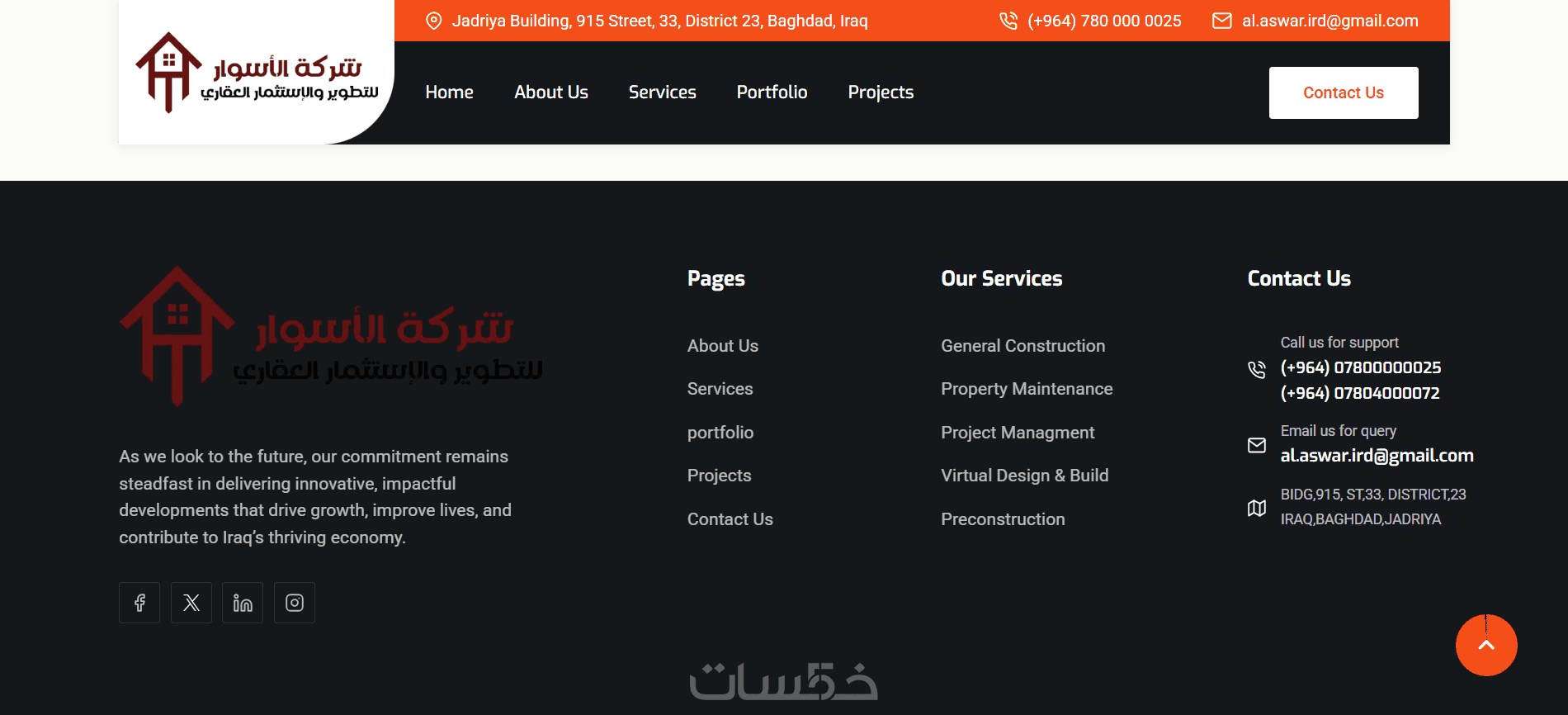 إنشاء موقع احترافي للتطوير والاستثمار العقاري