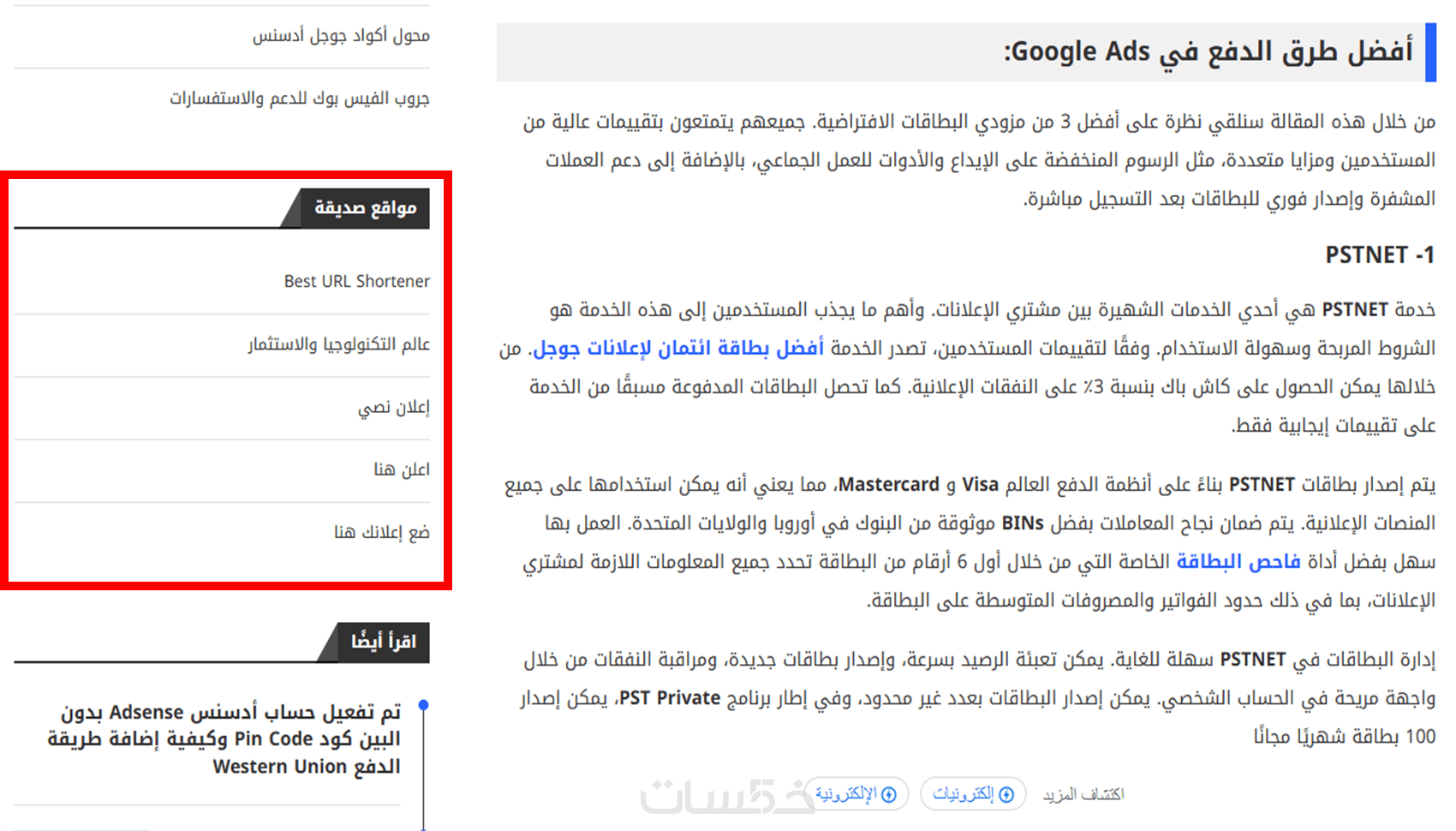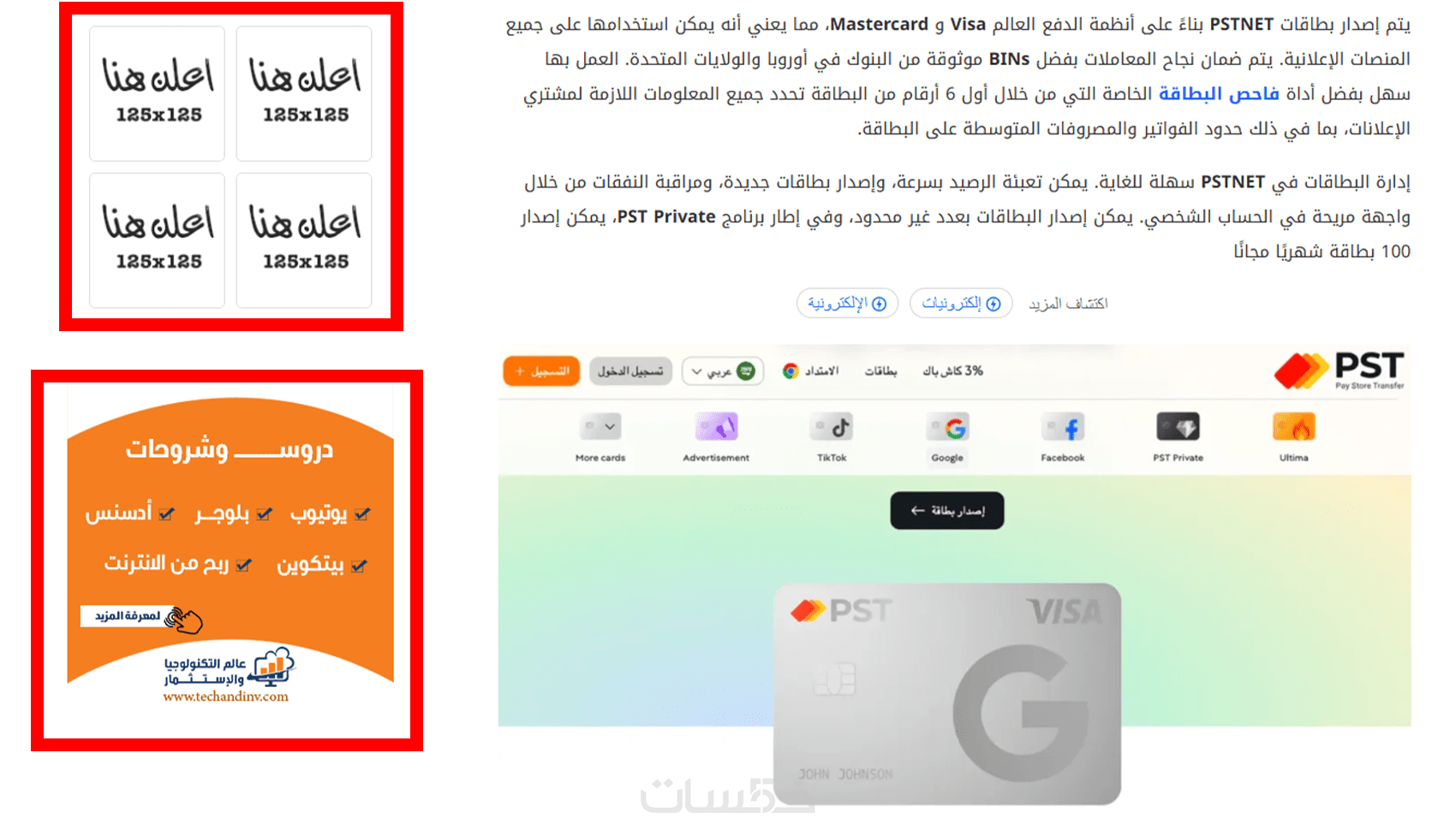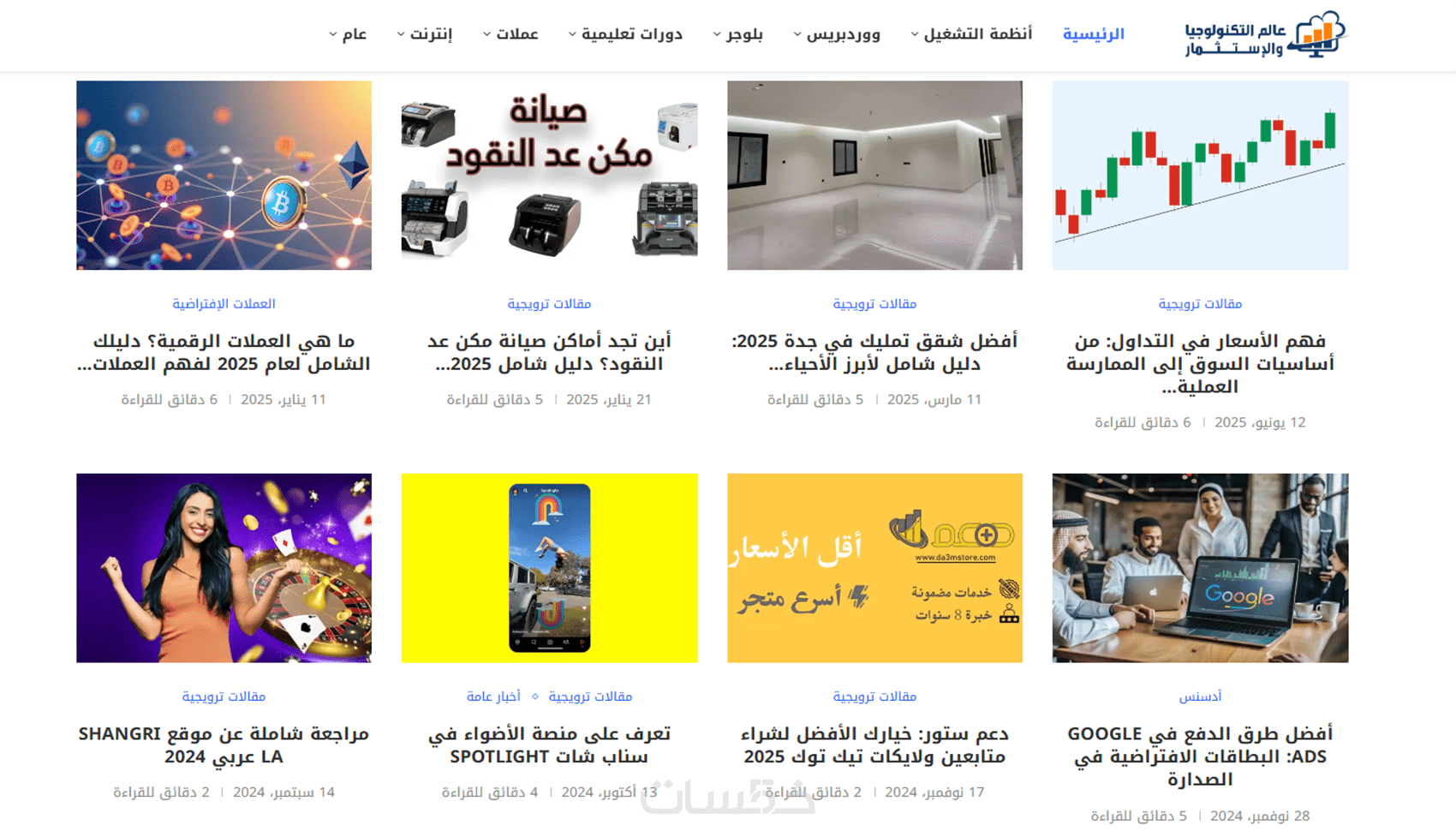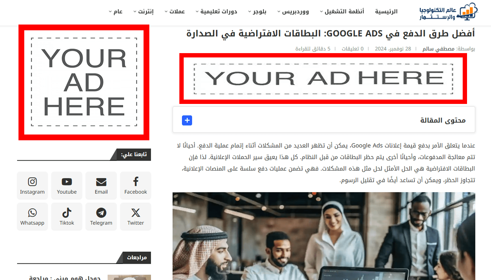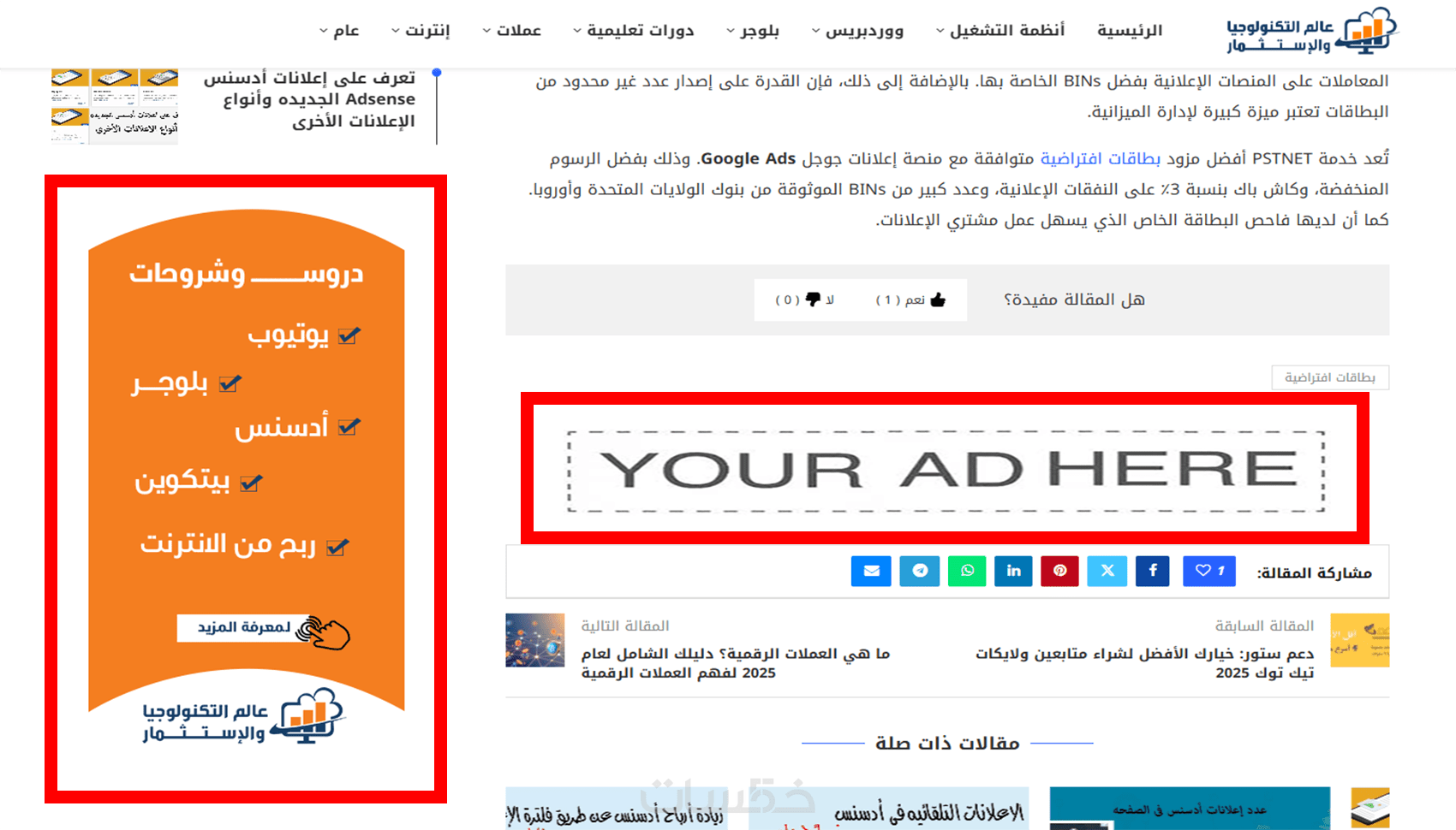 إعلان نصى أو بانر بجميع المقاسات لمدة شهر على موقع عالم التكنولوجيا والاستثمار