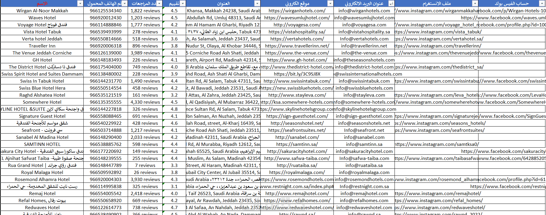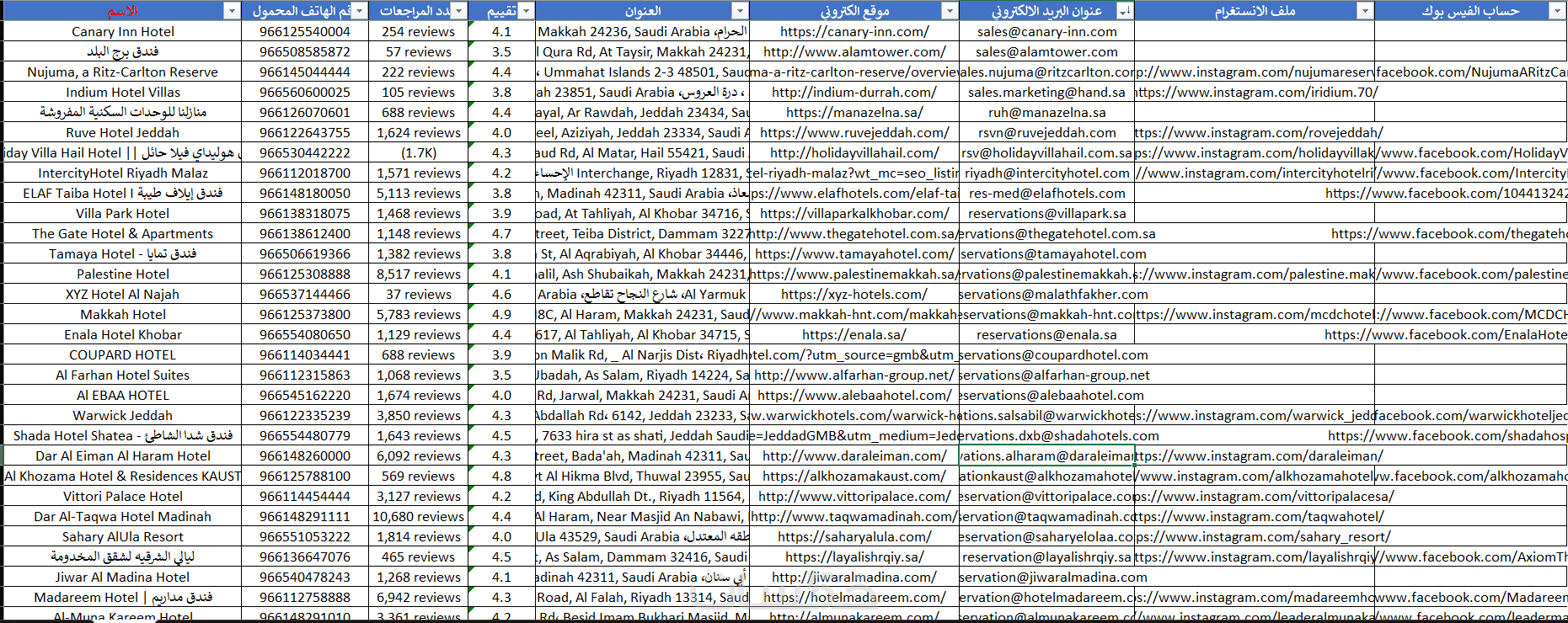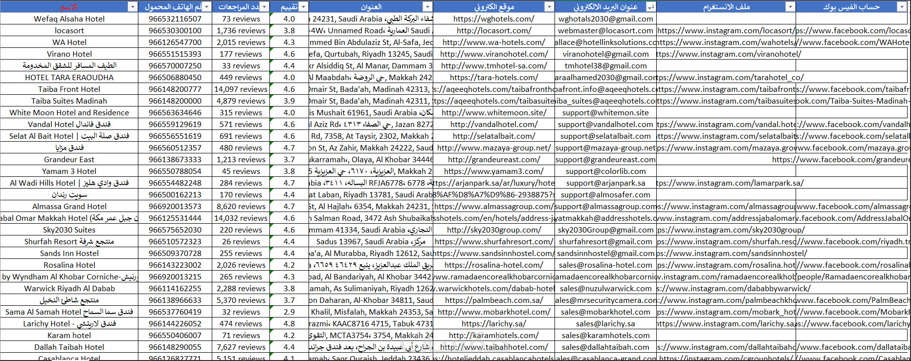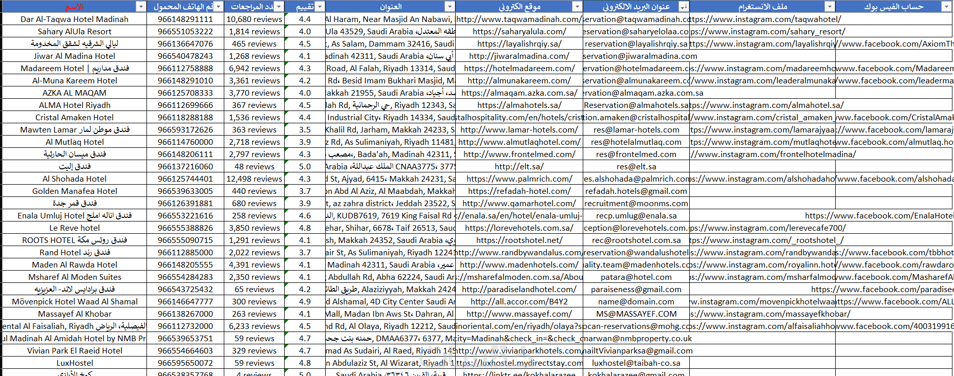 داتا كبيرة أرقام جوالات مطاعم ومقاهي سعودية يتم تحديثها حسب طلبكم