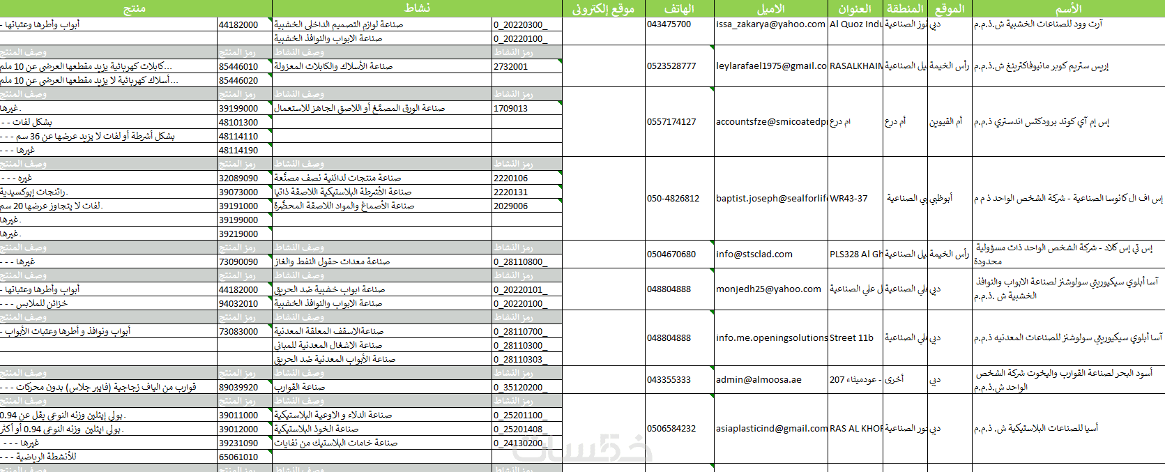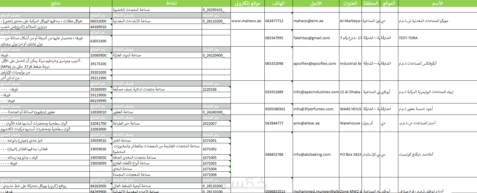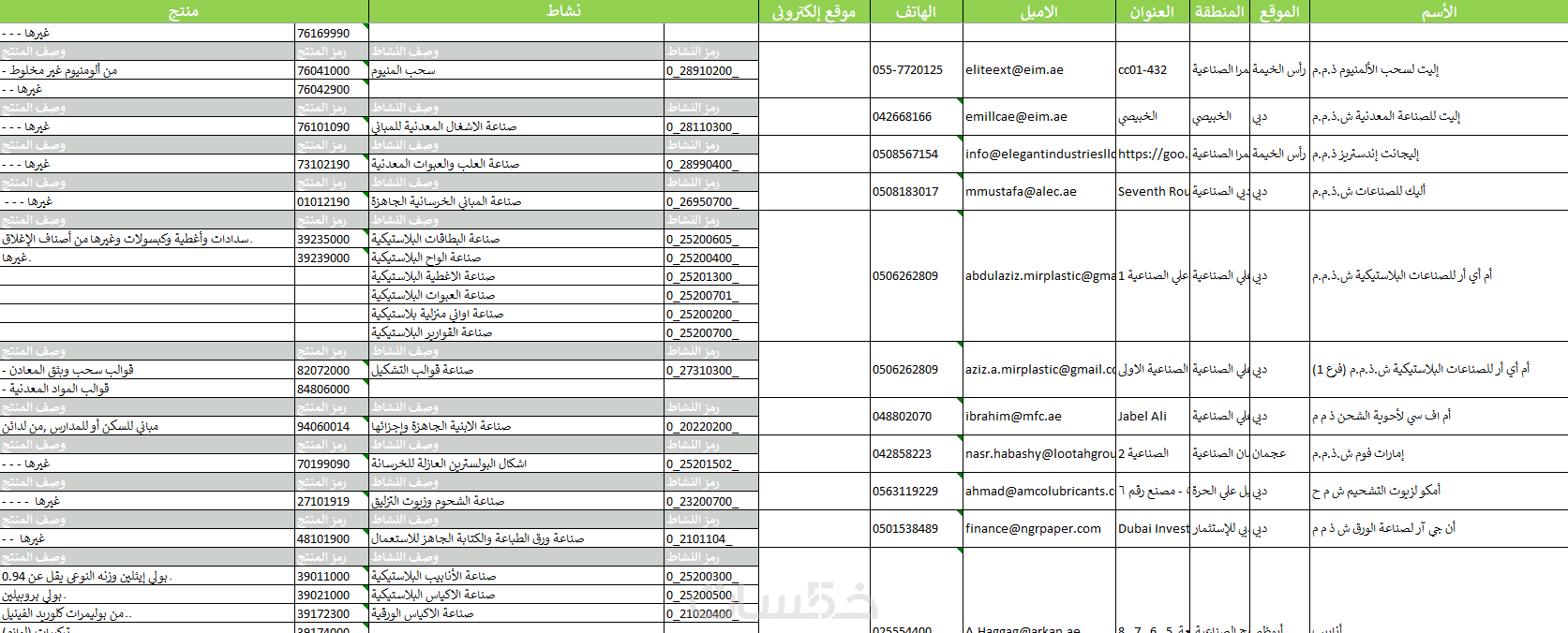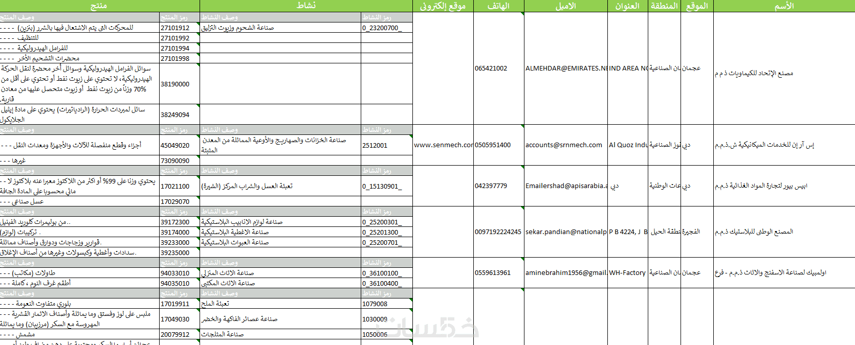 دليل مصانع الامارات مع الايميلات وارقام التواصل