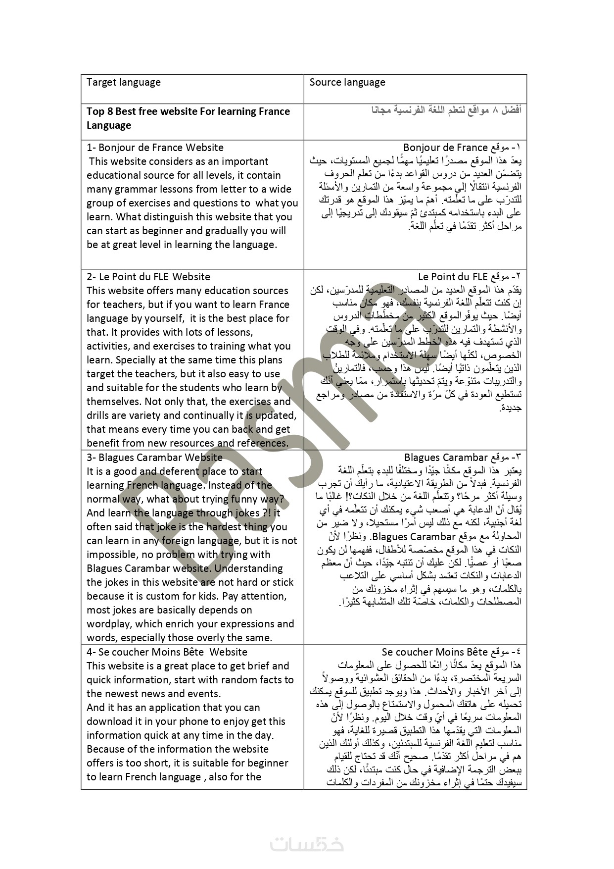 الترجمة من الفرنسية إلى العربية بدقة وصياغة متميزة