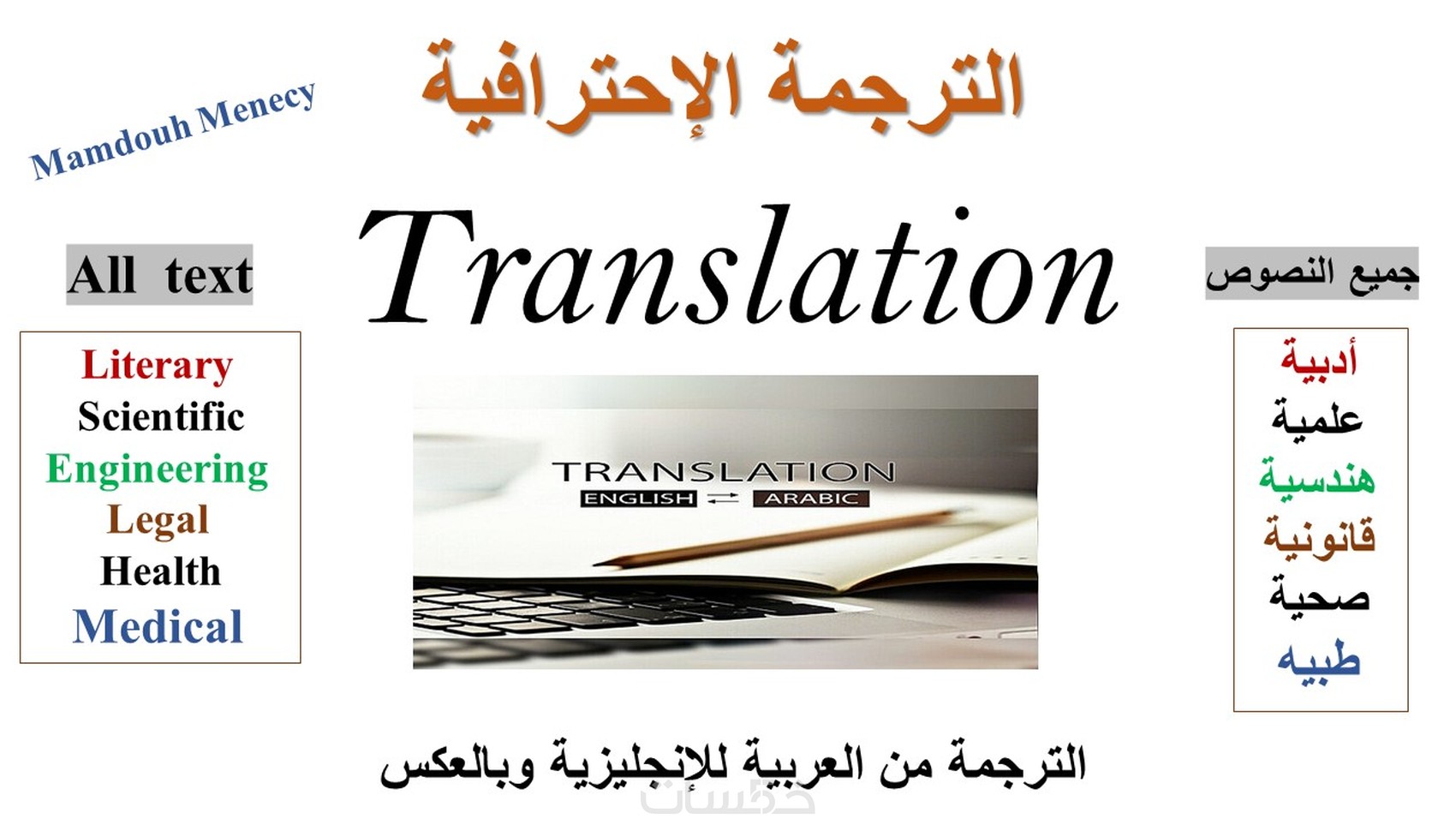 سأقوم بالترجمة من العربية إالي الإنجليزية والعكس
