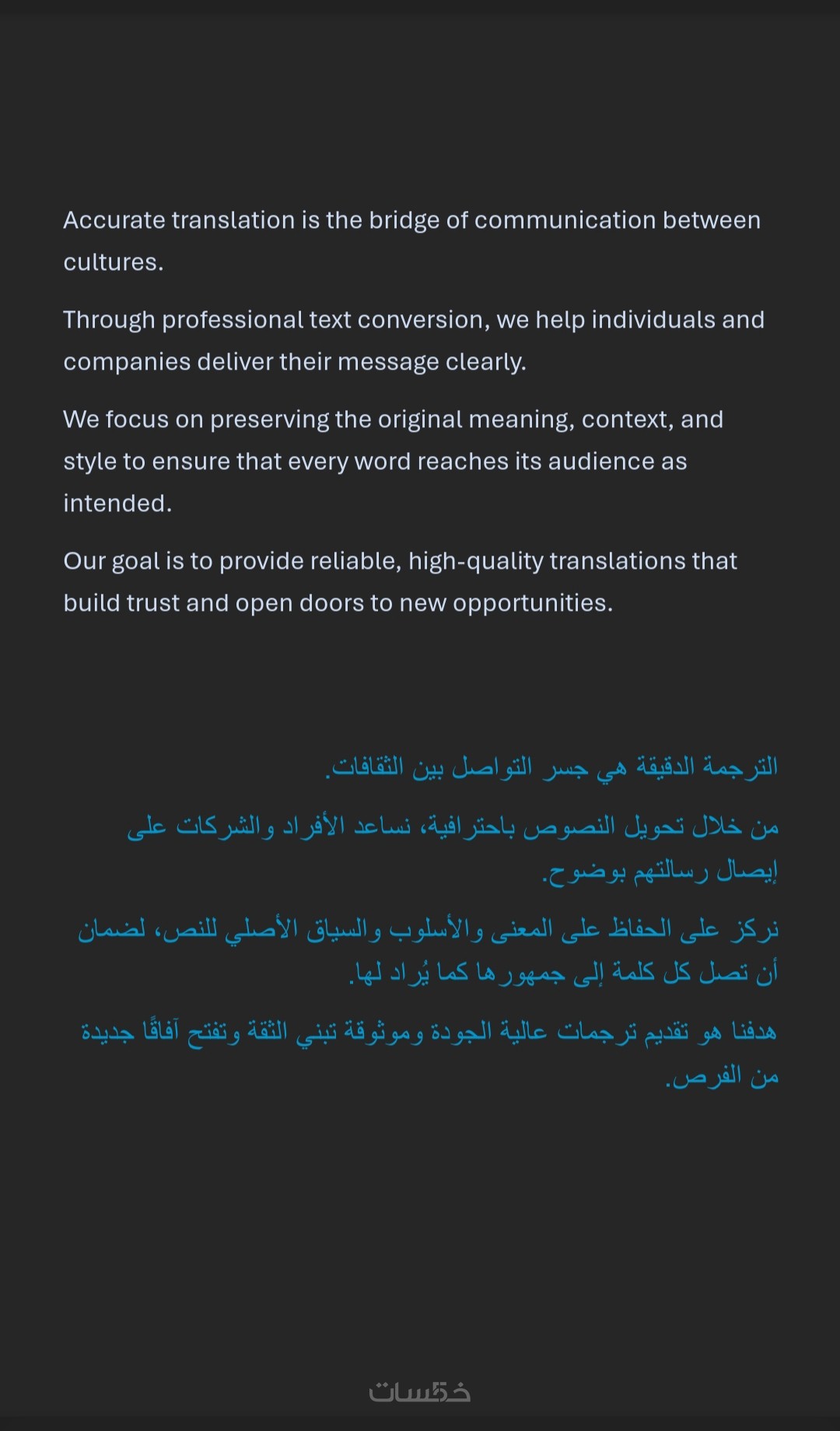 ترجمة نصوص عربي وإنجليزي بجودة احترافي