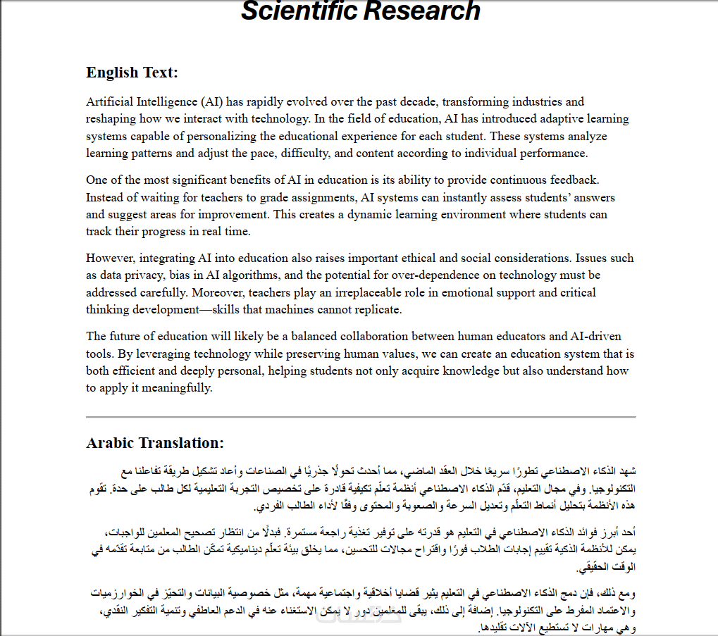 ترجمة احترافية للبحوث والتقارير التقنية والعلمية من الإنجليزية إلى العربية