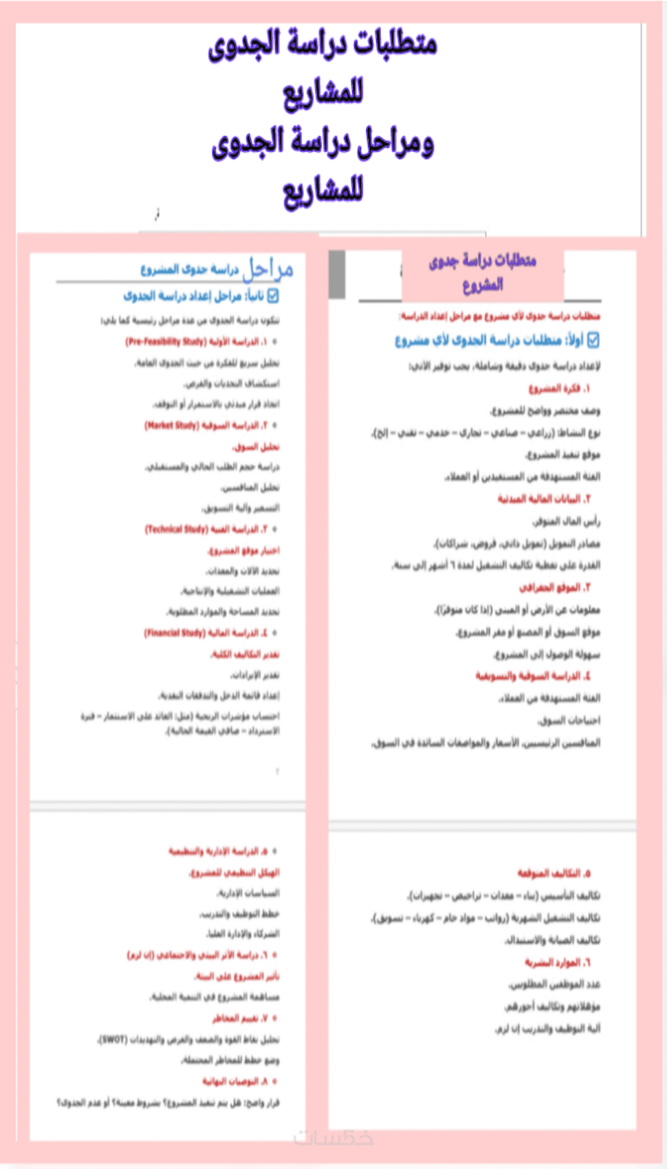 دراسة جدوى احترافية و ممتازة لجميع المشاريع