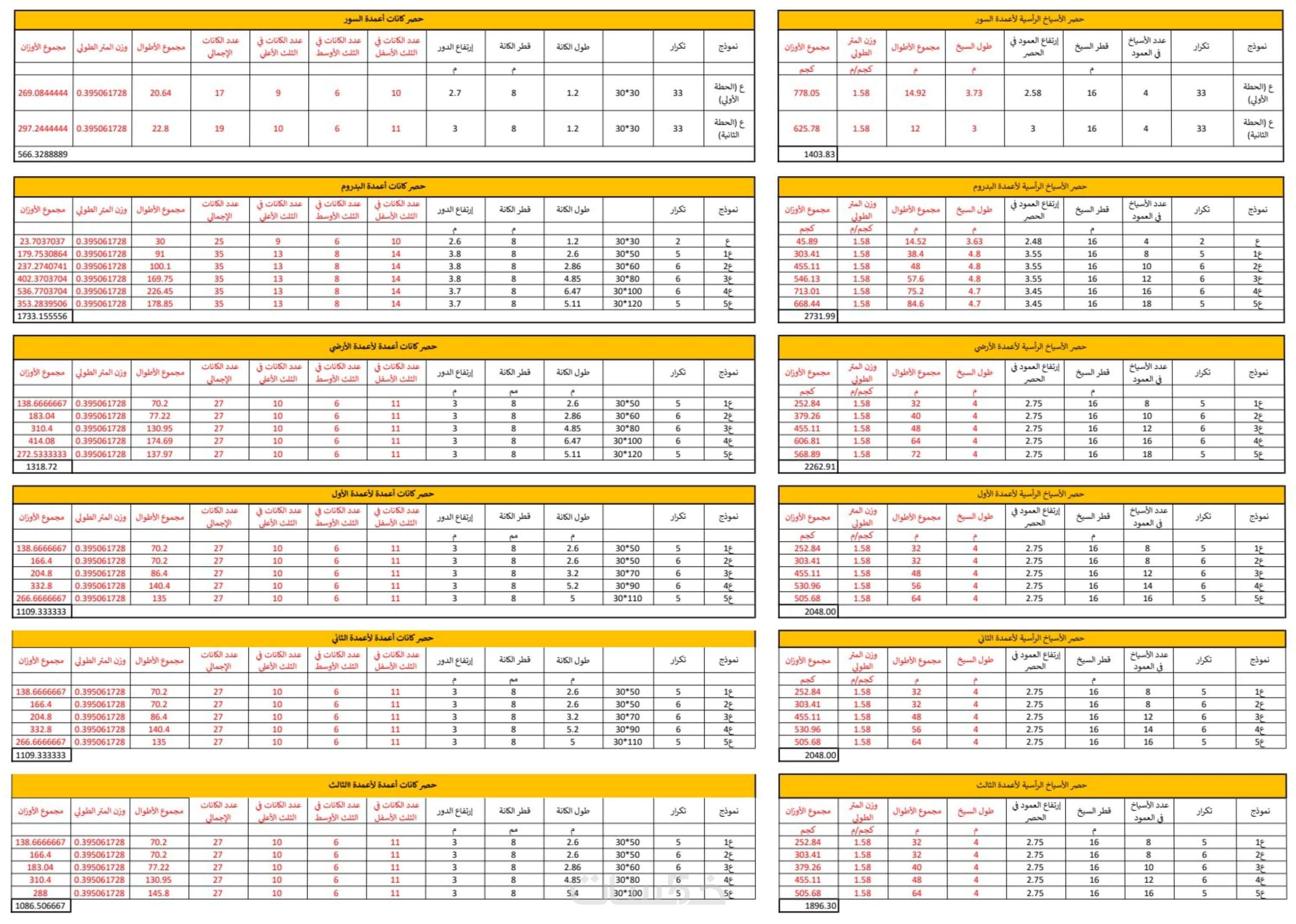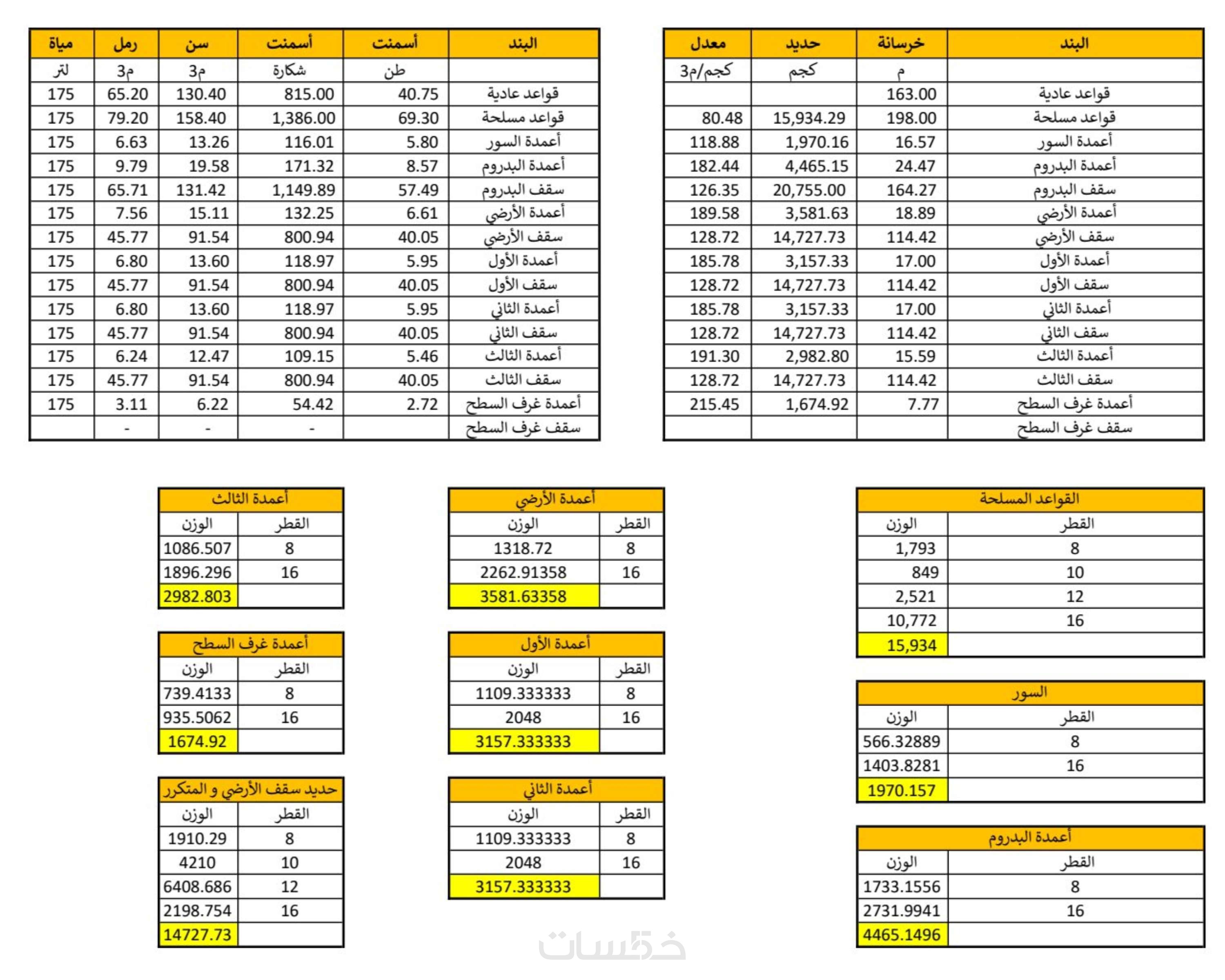 حساب كميات العظم و التشطيبات بشكل دقيق و مفصل