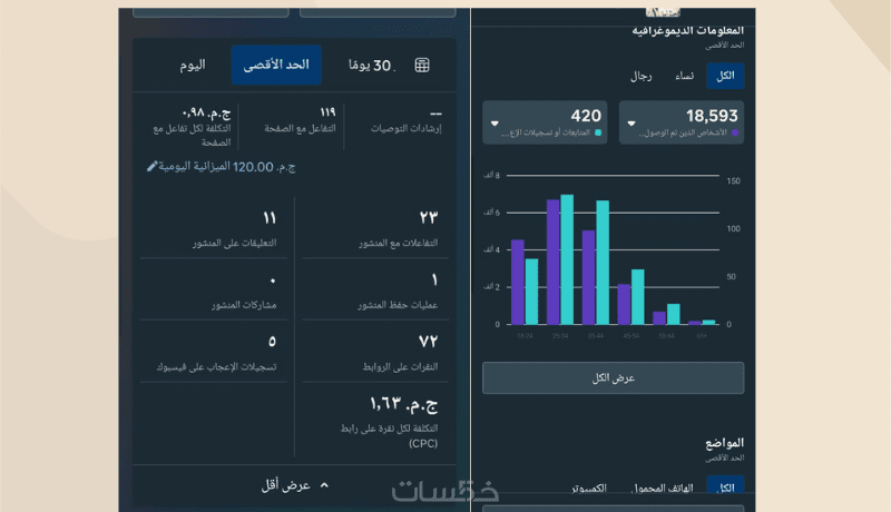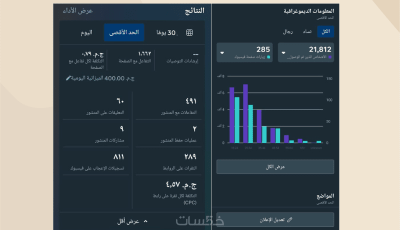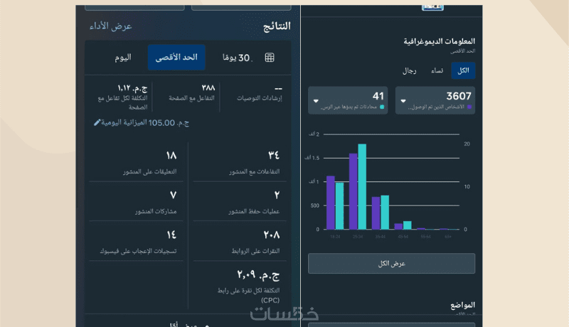 إعلان ممول على فيسبوك مع إدارة الحملة كاملة