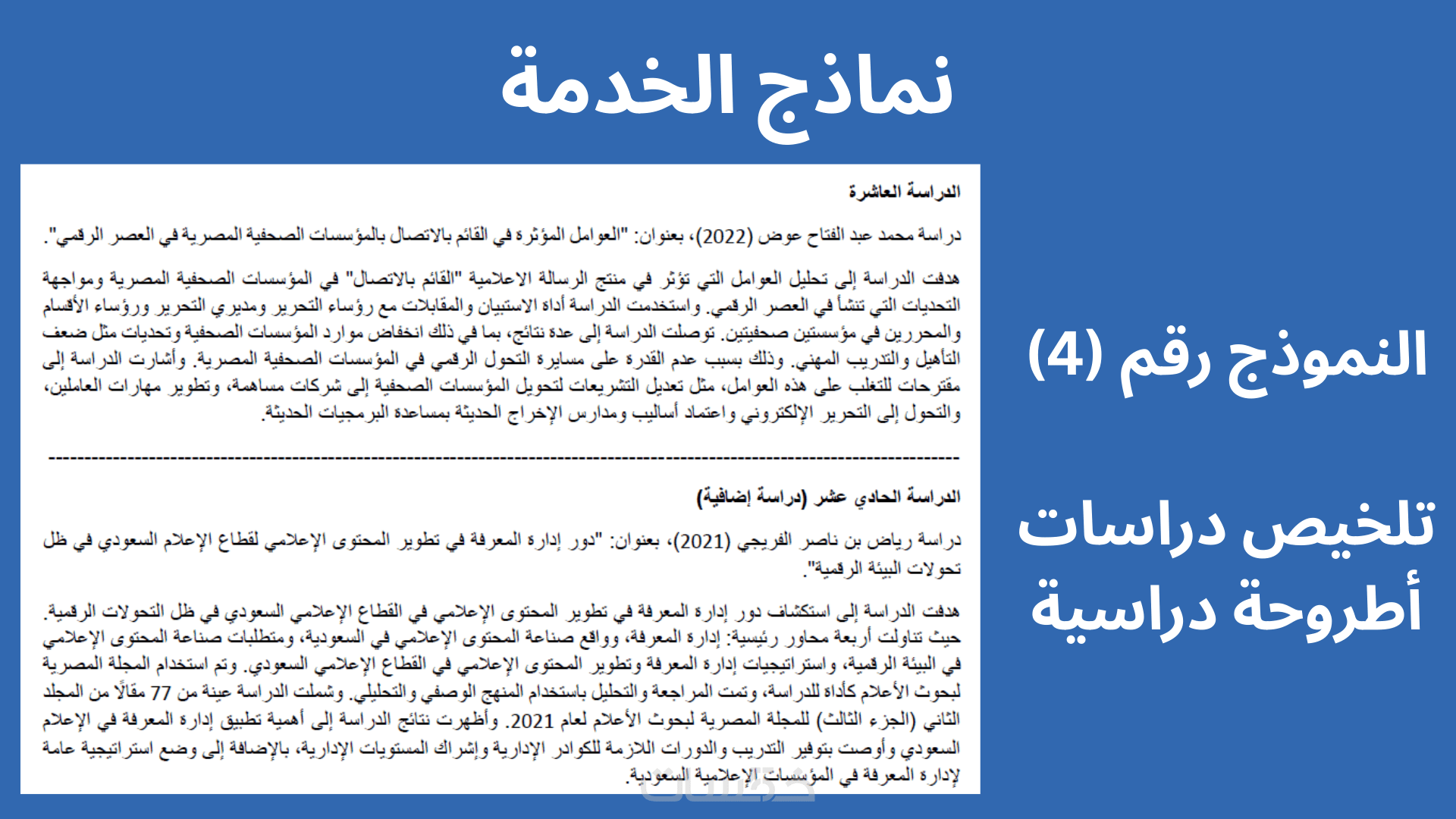 تلخيص الكتب والدراسات ورسائل الماجستير والدكتوارة