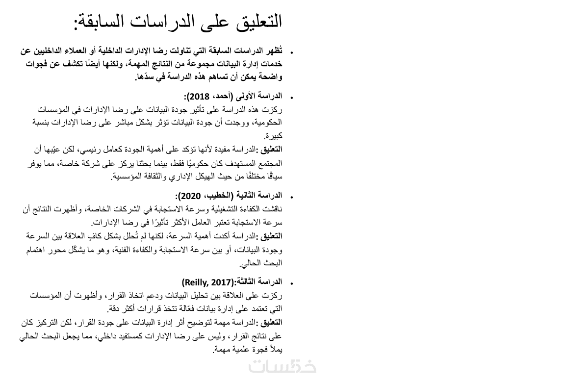 تلخيص الدراسات السابقة Literature Review والتعليق عليها