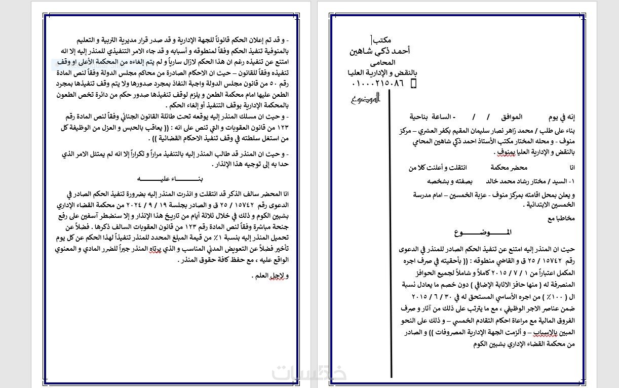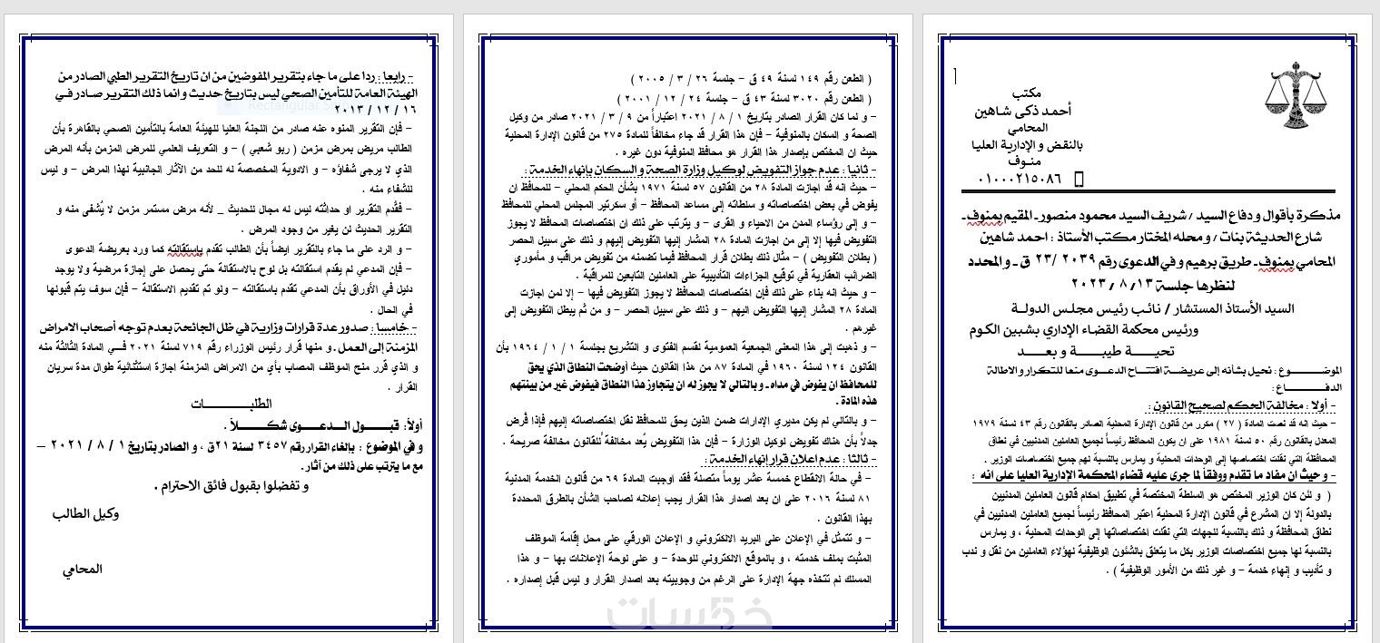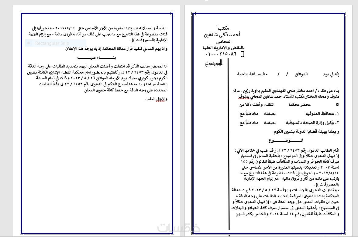 كتابة كافة المذكرات القانونية وفقاً للقانون المصري