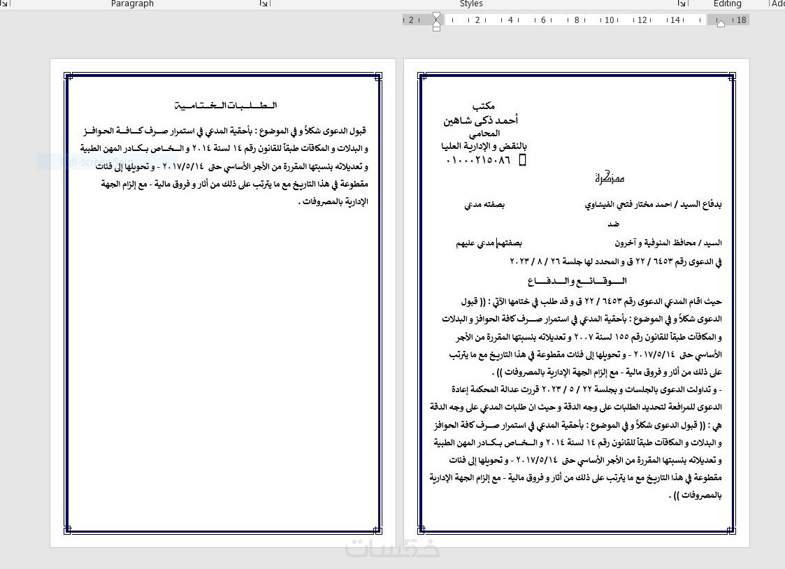كتابة صحف الدعاوى والاستئناف ومذكرات النقض بالقضاء المصرى