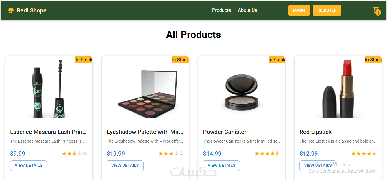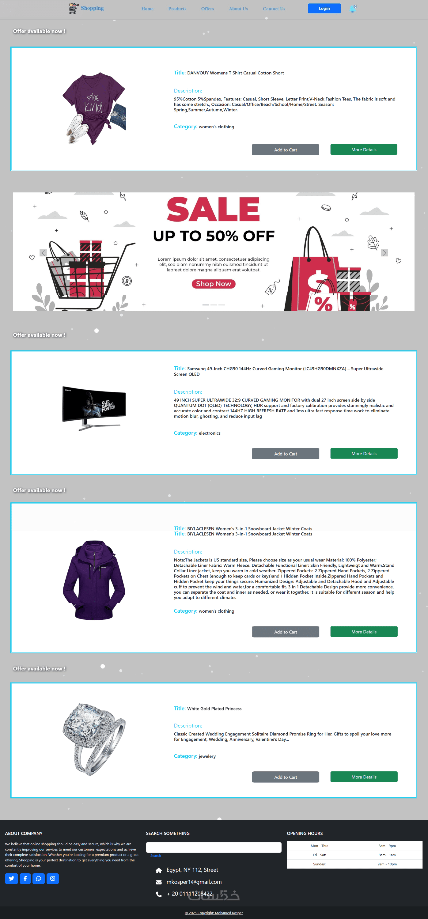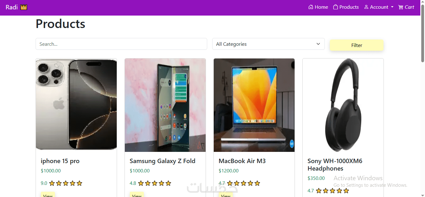 موقع تسوق كامل يمكن من خلاله عرض منتجات وفلتره والدفع الفوري