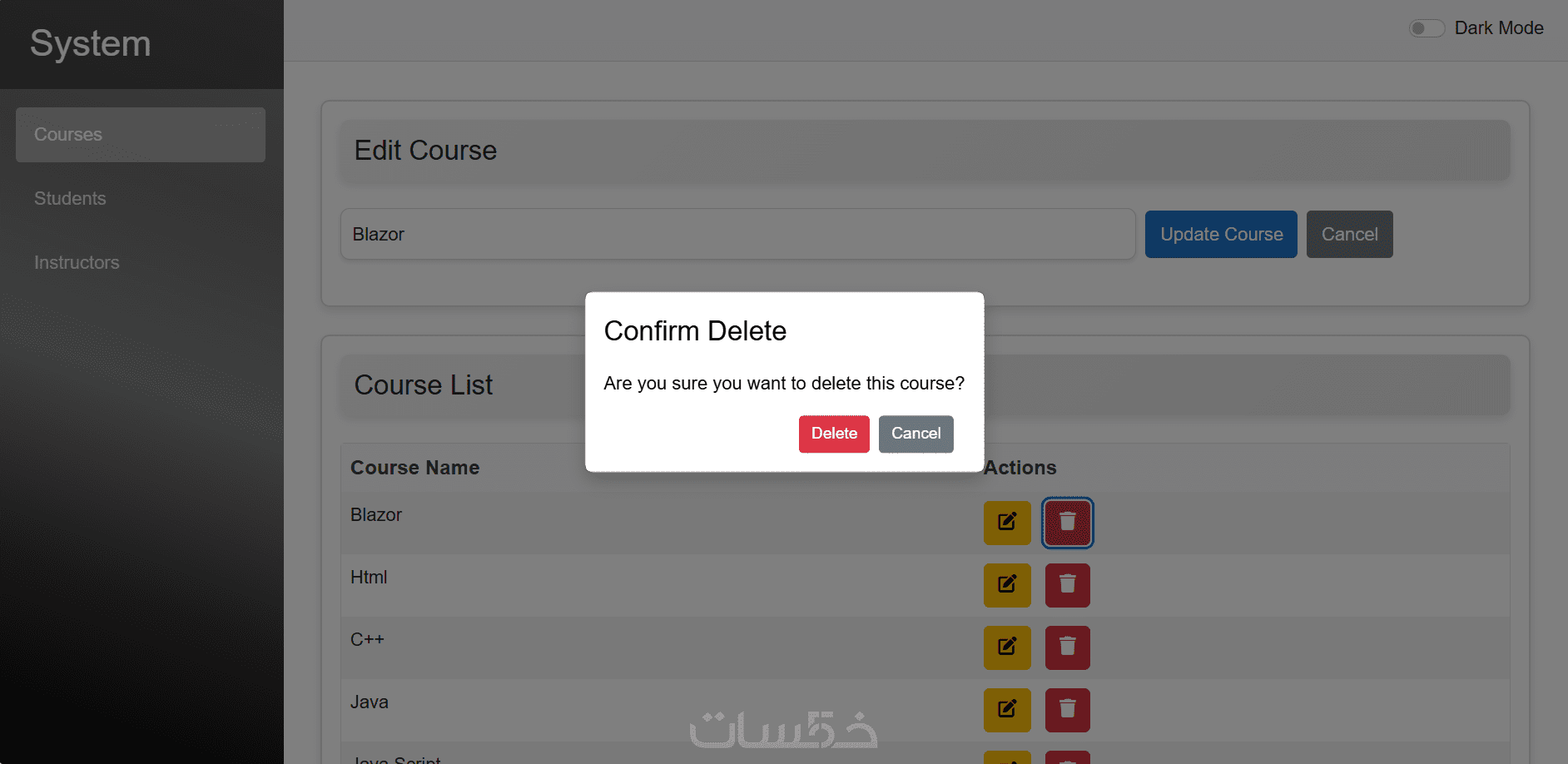 نظام إدارة الدورات التدريبية باستخدام Blazor