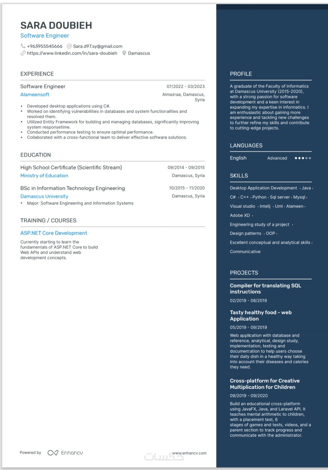 كتابة سيرتك الذاتية بإحدى اللغتين العربية والإنجليزية