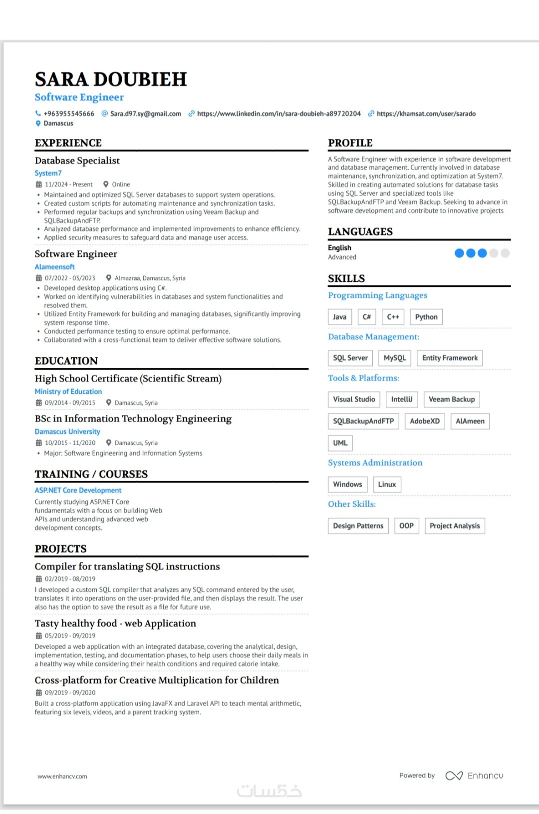 تصميم و كتابة والسيرة الذاتية C.V ( عربي - إنجليزي )