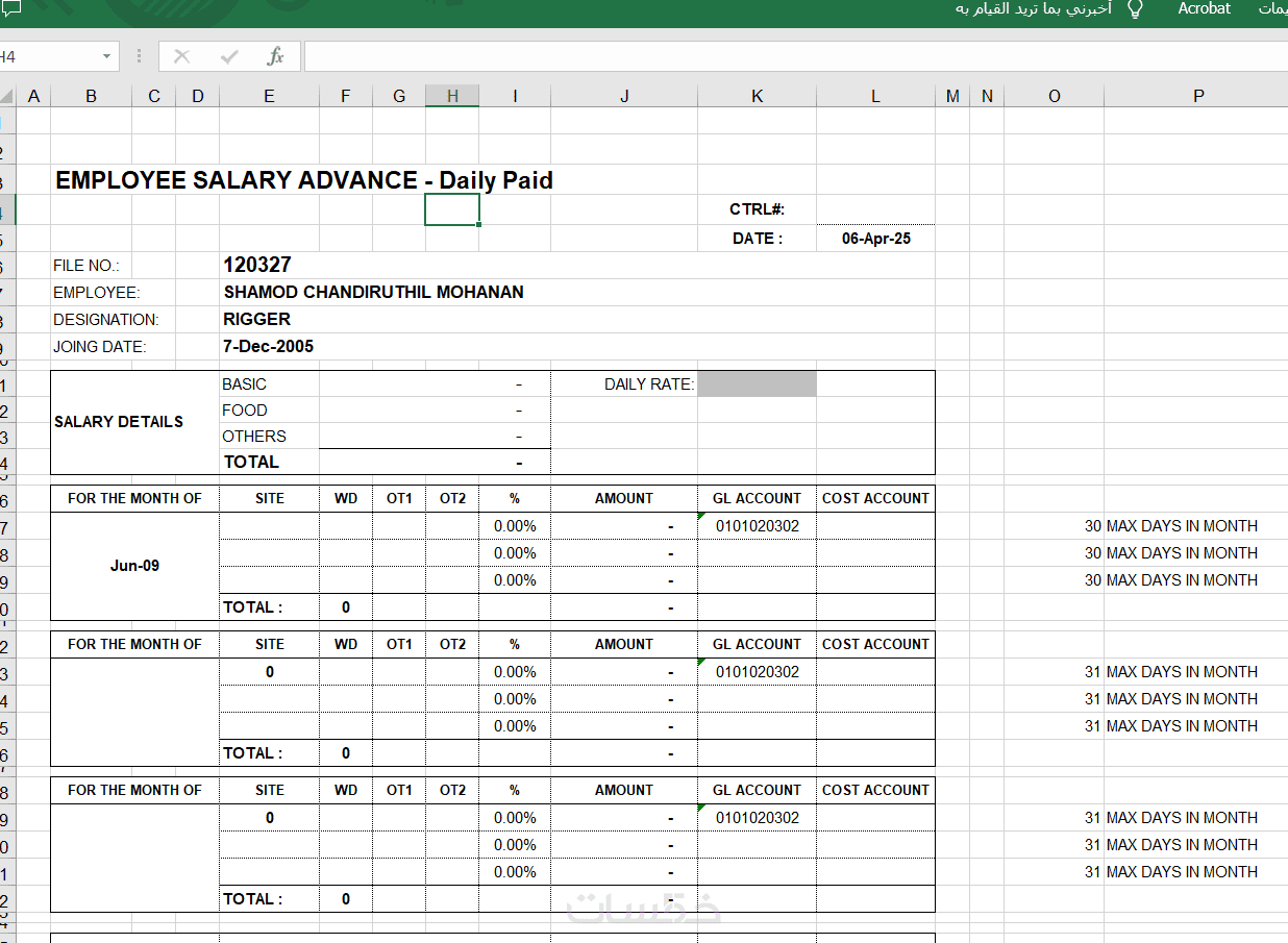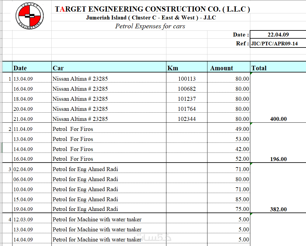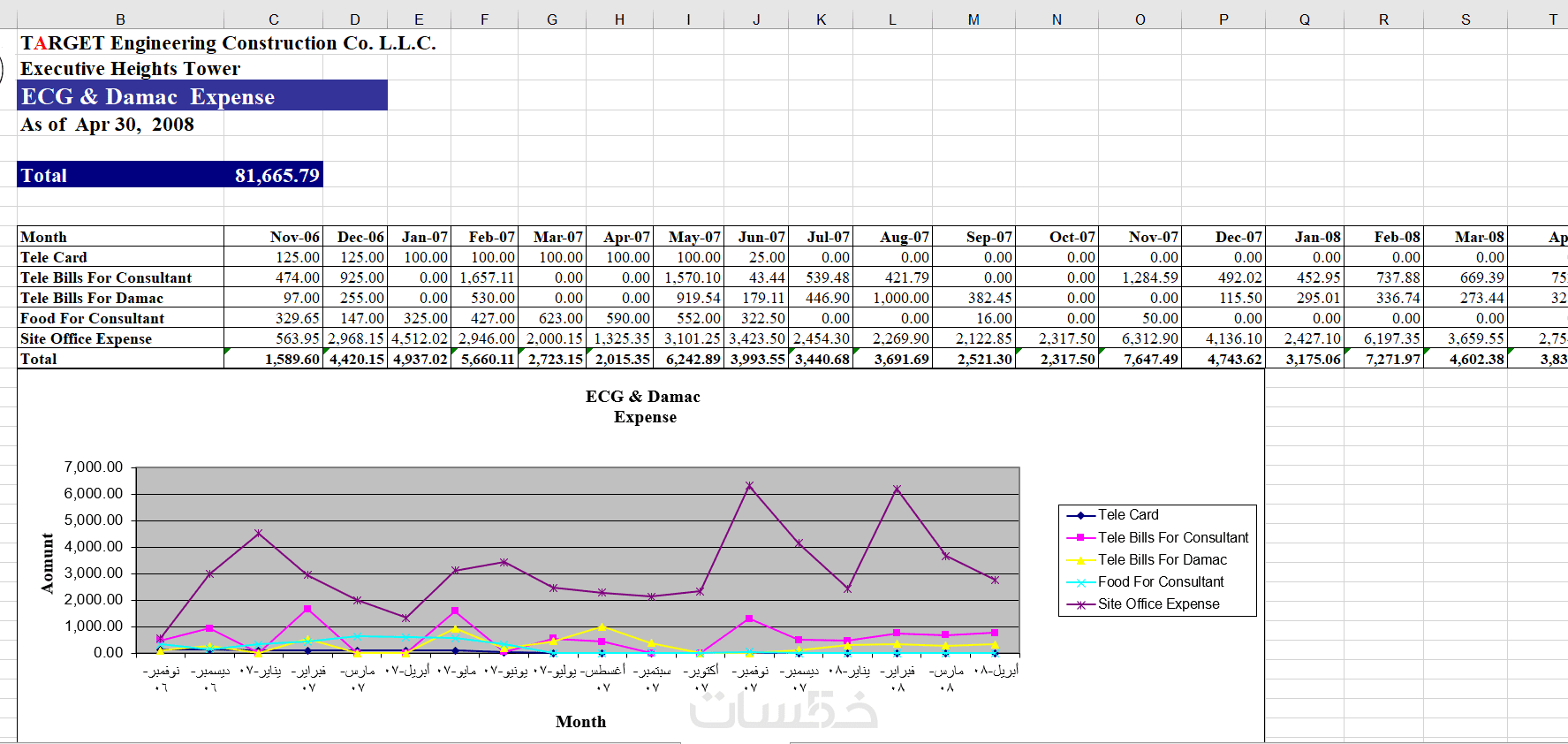 تصميم جداول Excel محاسبية كشف حساب فواتير مصروفات